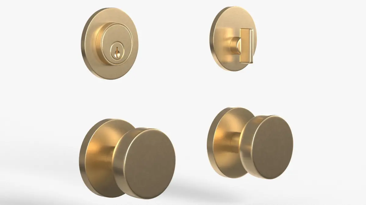 Tumalo Brass Cylinder Round Deadboltis a high quality polygonal model for subdividing that will enhance detail and realism to any of your rendering projects.The model has a fully textured, detailed design that allows for close-up renders, and was originally modeled in 3ds Max 2017 and rendered with V-Ray. Renders don't have any postprocessing.