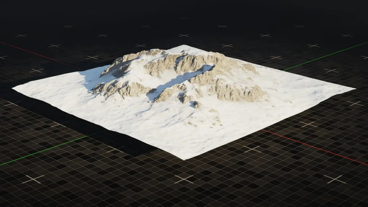 3, 4K Textures (Albedo, Normal, Displacement) 2, 4K CC0 Tileable texture sets for additional Detail (Rock and Snow) (Color, Normal, Displacement, Roughness)