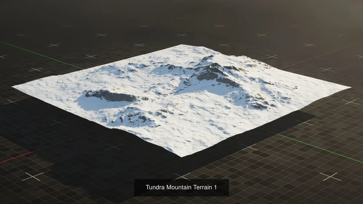 Optimized 3D Models of snowy and rocky Tundra landscapes ready for Cinematics, Animations, and Games. These assets are native to Blender. These assets are based on a 5000x5000 km area but can be scaled to fit your needs and is meant for medium to far shots to make interesting and photoreal Snowy Tundra backdrops.