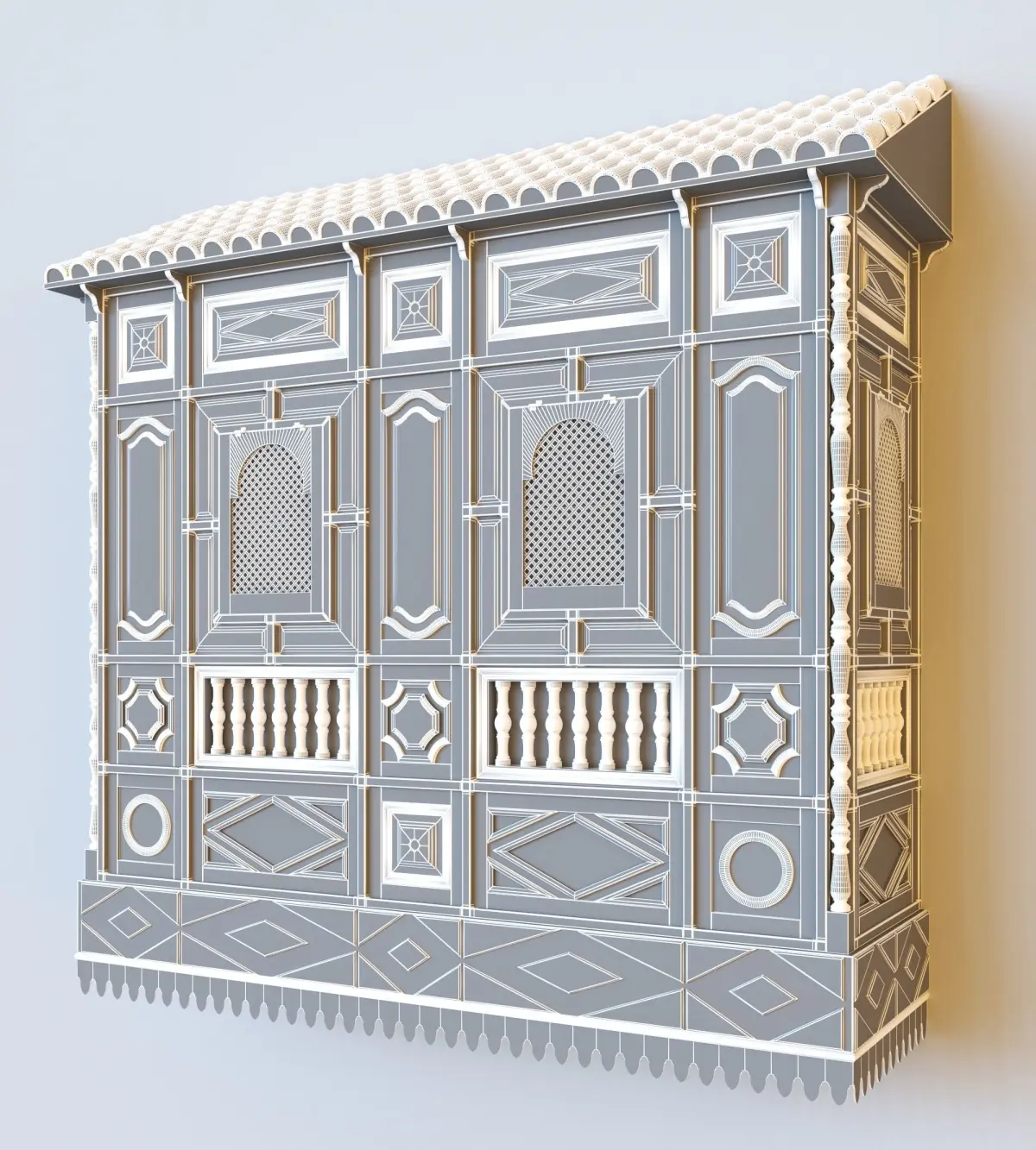 -Here is a Tunisian Islamic window (Mashrabiah) that I've created with 3Ds Max 2020 with high quality and details to add more realism to your projects. I saved it as 3Ds max 2017, to give you the variety with the versions. (fbx & obj format are included)and also it's TOTALLY UNWRAPPED, so you can easily assign your own texture and get a perfect texturing result.-Rendered with Vray 5-Dimensions: Depth 1.03 m Width 3.26 m Height 3.32 m