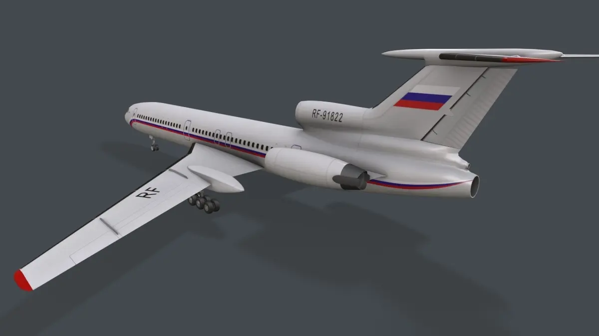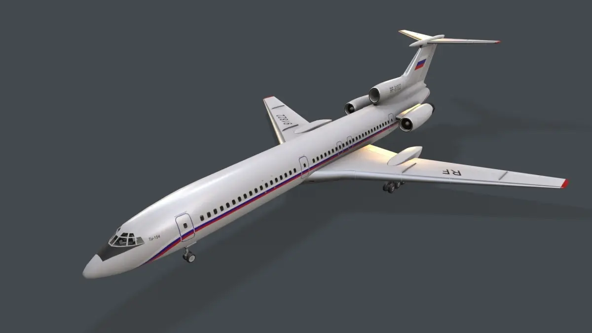 Realistic 3d model of Airplane Tu-154 Russia Livery with LODs