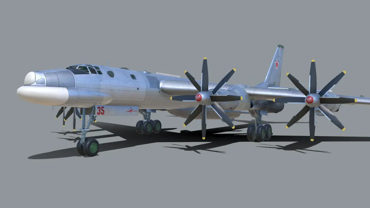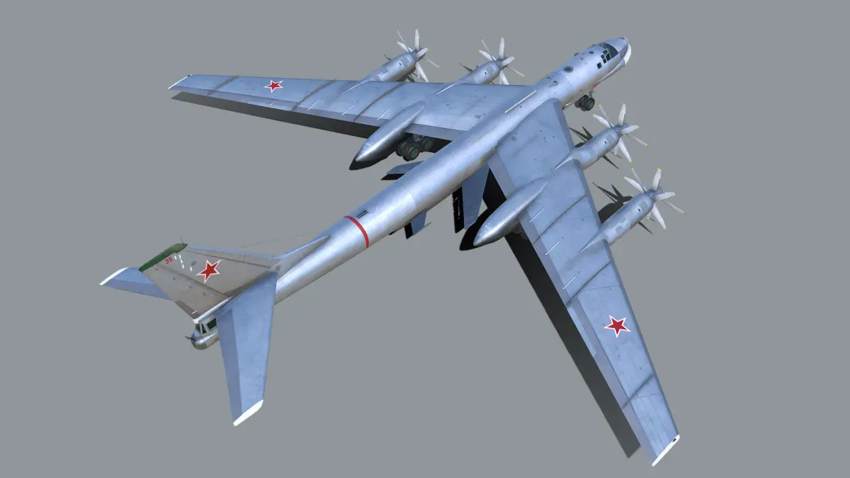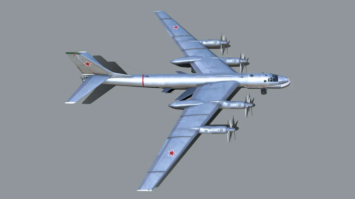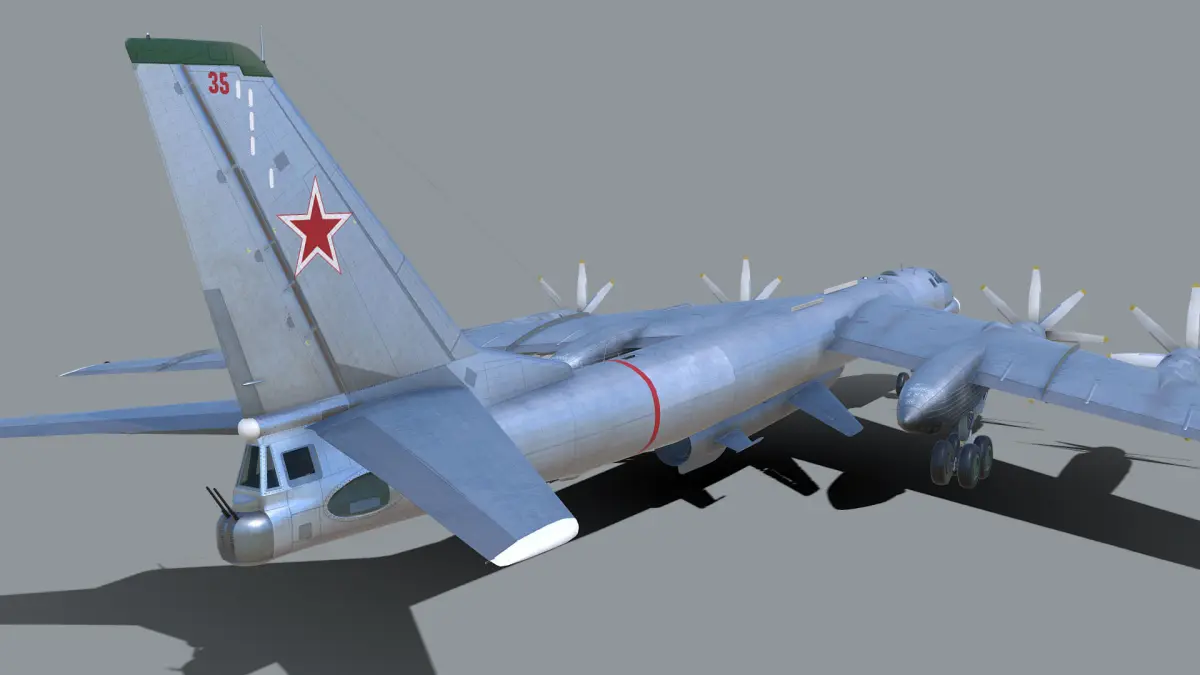 The Tupolev Tu-95 Bear is a large, four-engine turboprop-powered strategic bomber and missile platform. First flown in 1952, the Tu-95 entered service with the Long-Range Aviation of the Soviet Air Forces in 1956 and is expected to serve the Russian Aerospace Forces until at least 2040. A development of the bomber for maritime patrol is designated Tu-142, while a passenger airliner derivative was called Tu-114.