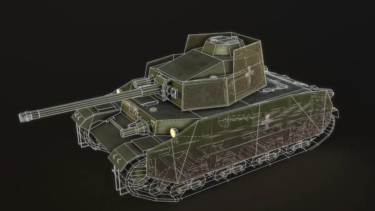 This is my old turan III lowpoly tank reworked version. Got new UV and PBR textures. Body and turret 2048 PBR textures and emission map for lightsSkirt: 1024 PBR textures (used alpha channel in color texture)Track: 512 PBR textures (used alpha channel in color texture)Wheels: 1024 PBR textures (used alpha channel in color texture)4 variation camo color and 3 color variation for tracks (normal,dirty and winter)Seperated and named parts