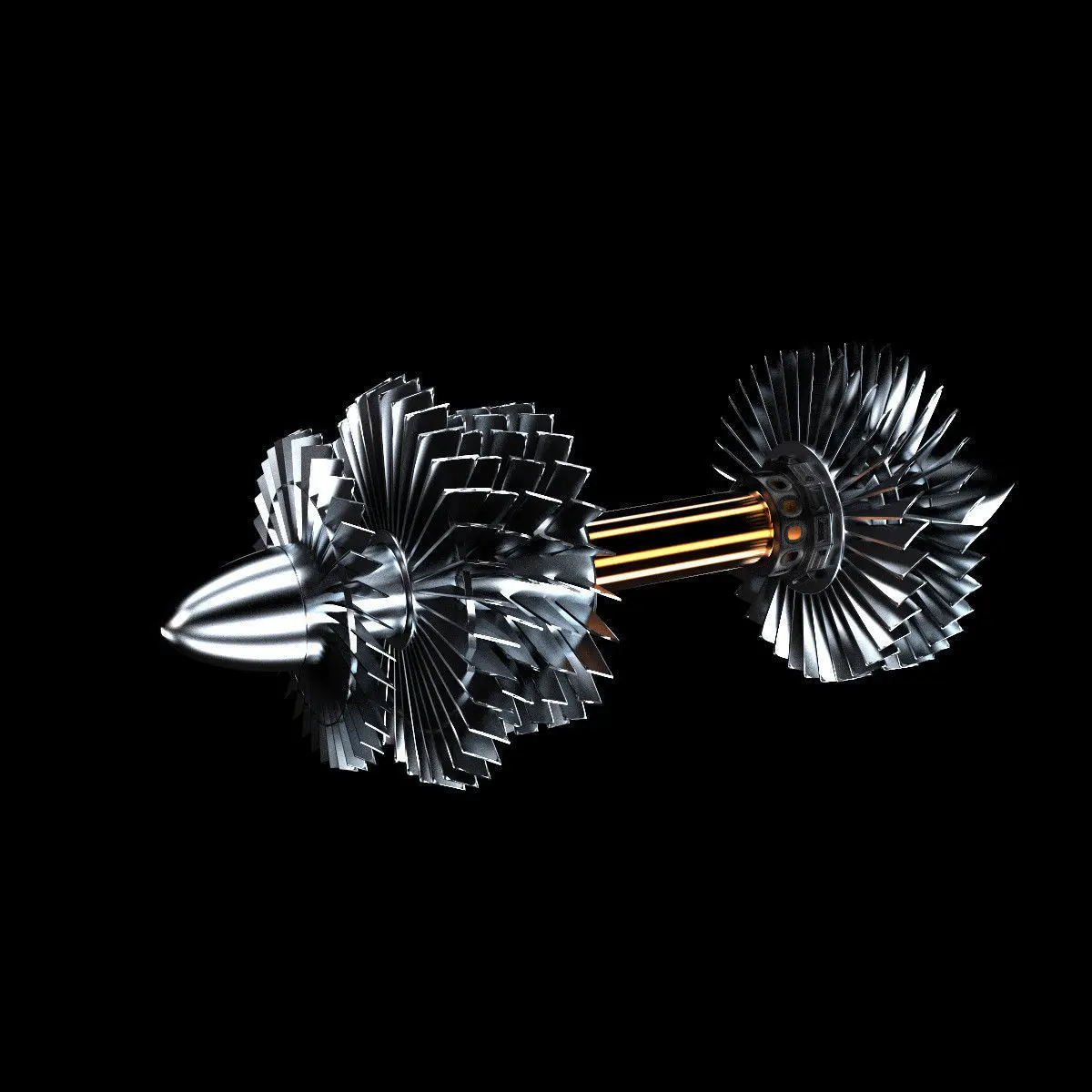 -objects accurately distributed by layers-beautiful turbine has a cut-off animation