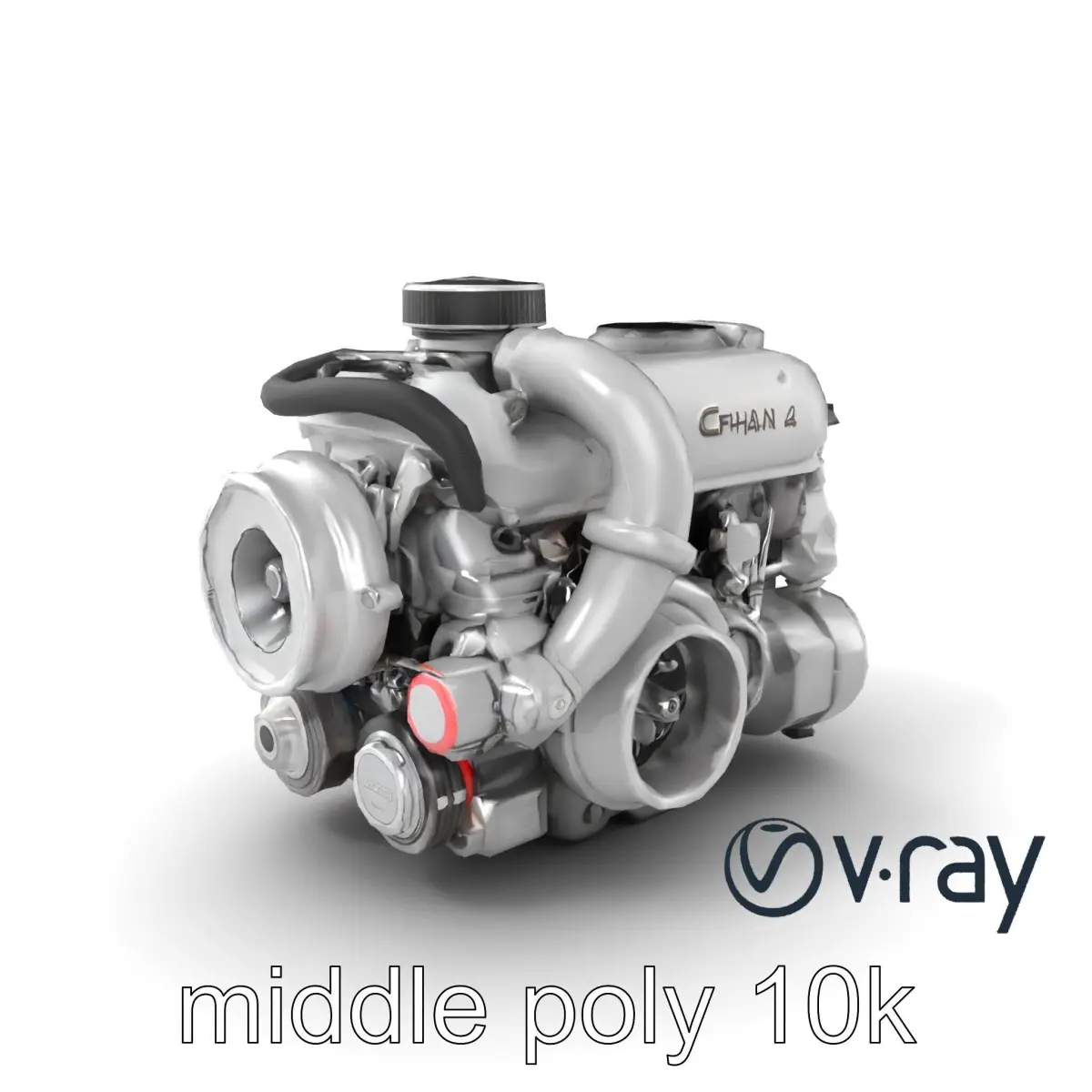 This turbocharged inline-4 engine model is perfect for automotive visualizations, engineering simulations, and educational purposes. Its compact design with integrated turbocharger assembly and detailed intercooler piping demonstrates precision-engineered combustion chambers and advanced fuel delivery components.