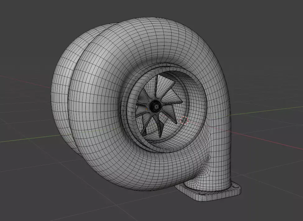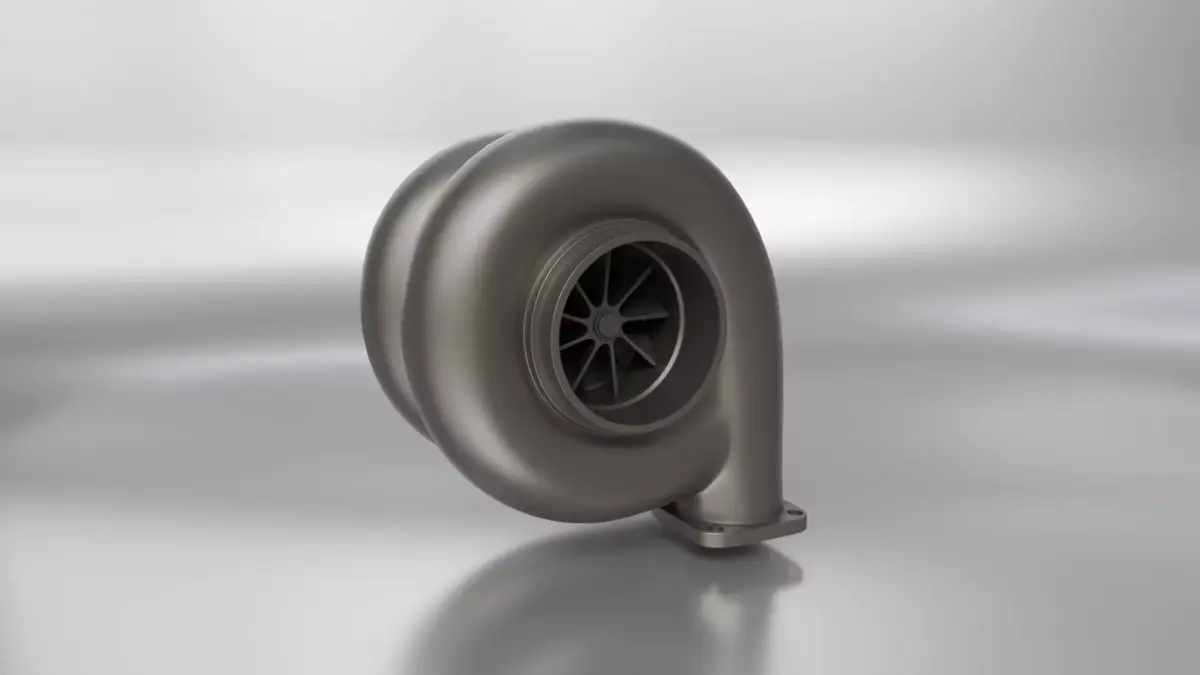This 3D model presents a high-performance turbocharger concept designed for gasoline engines, ideal for tuning, motorsport, and mechanical visualization projects. The asset features a clean, stylized turbine housing with visible compressor wheel geometry, optimized for cinematic renders and technical presentations.