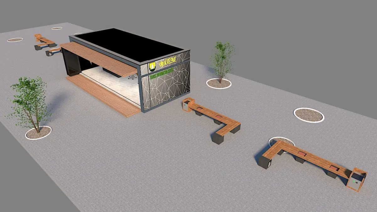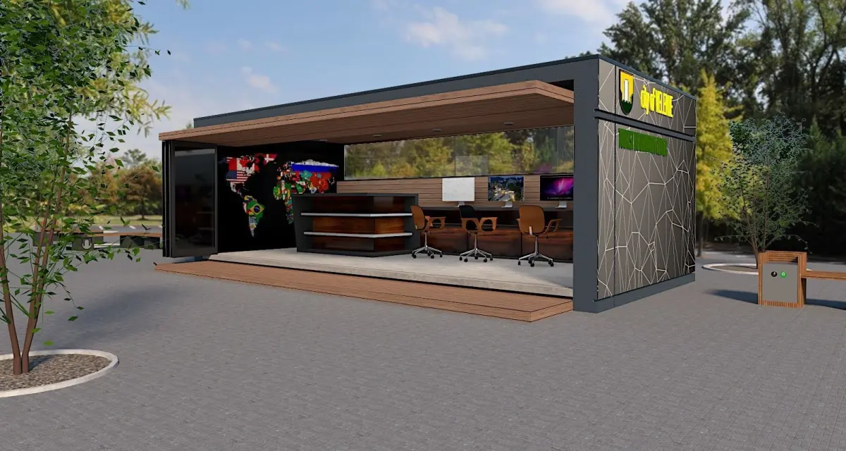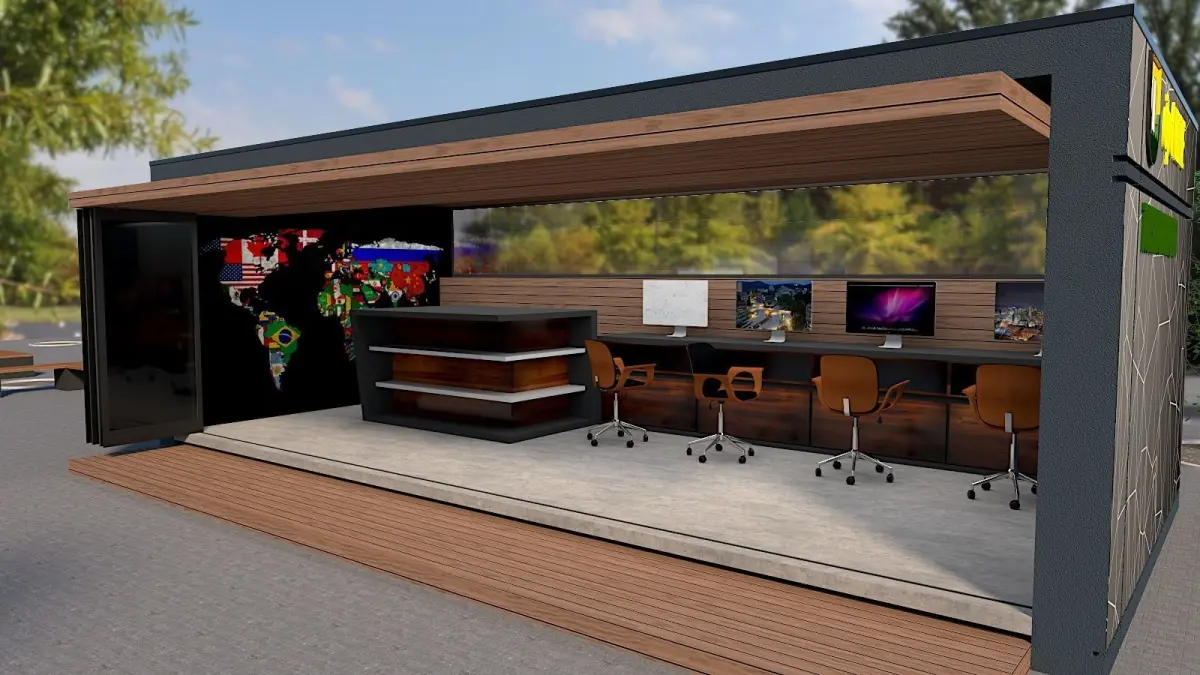 turist office/ modular unit.modern designed turist office with glass sliding door wall.model is done with sketchup 2017.