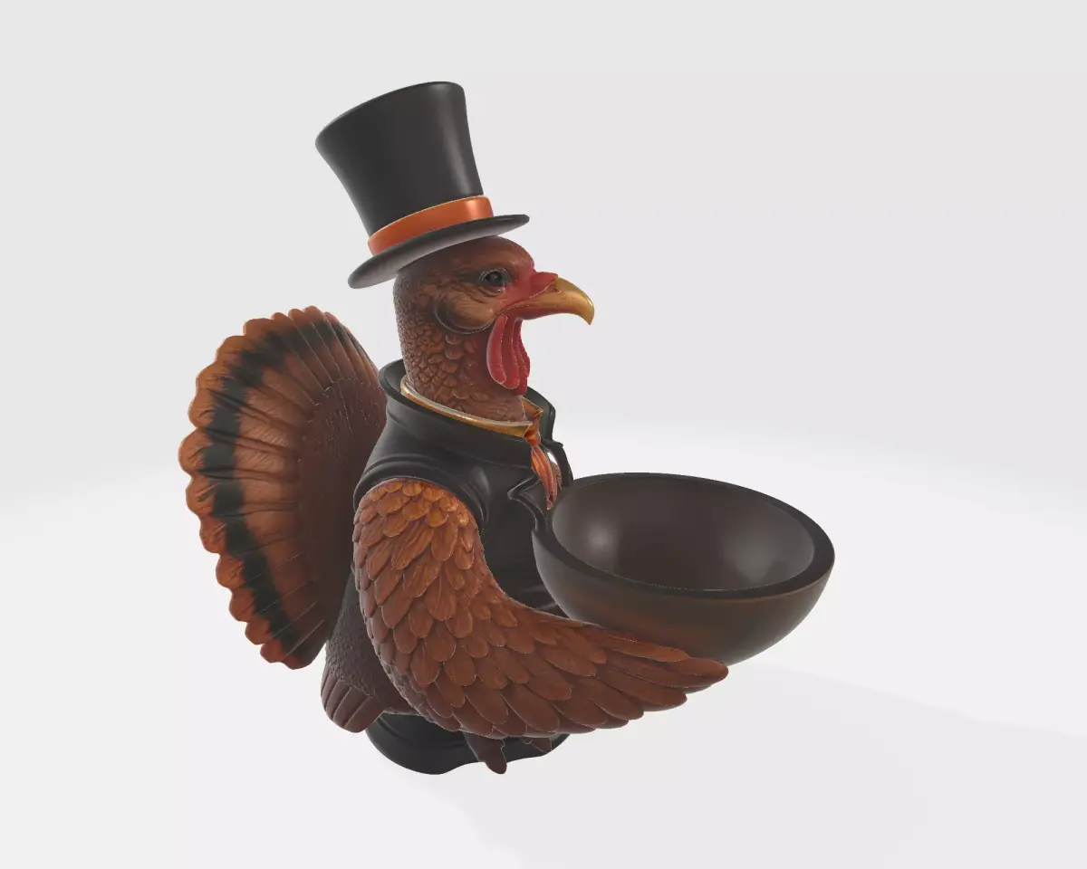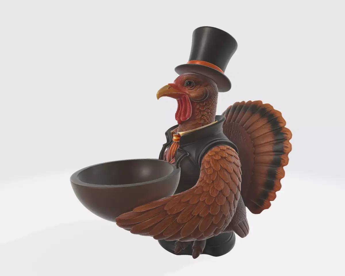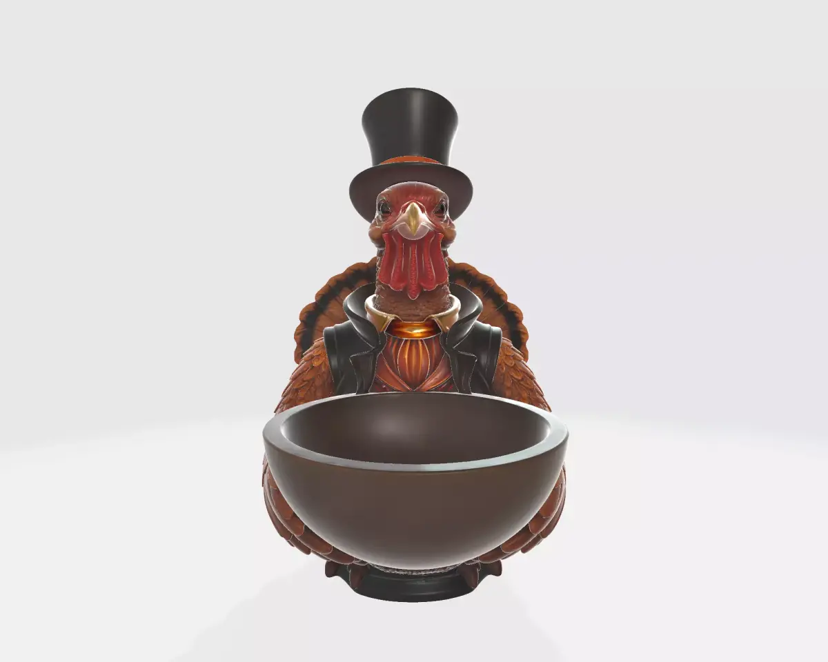 Bring a touch of festive charm to your holiday celebrations with this unique 3D printed Turkey Candy Bowl Holder. Designed with intricate detail, this turkey wears a classic pilgrim outfit complete with a top hat, making it a perfect centerpiece for your Thanksgiving table. The bowl is ideal for holding candy, snacks, nuts, or even small trinkets, adding both functionality and seasonal cheer to your home.
