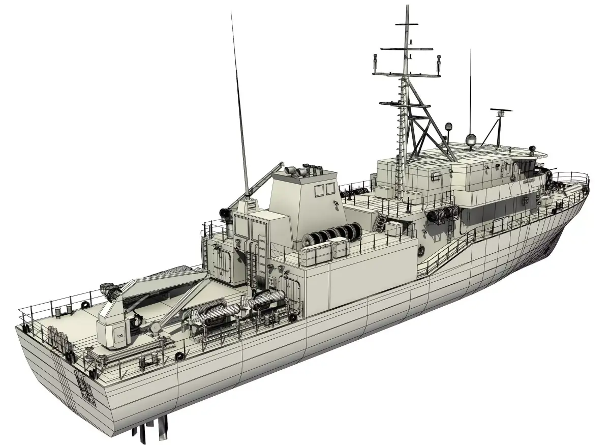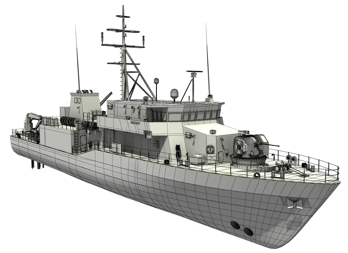 AYDIN class mineships are being operated by Turkish Navy in the minehunter role.The model is created based on real world dimensions. The hull is textured by unwrap in 8192x8192The model is moderate detailed and proper for close up renders