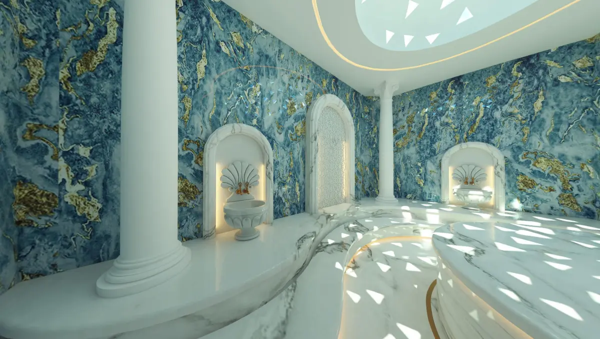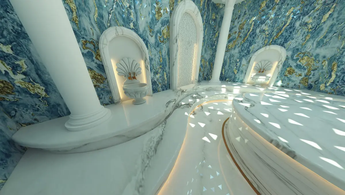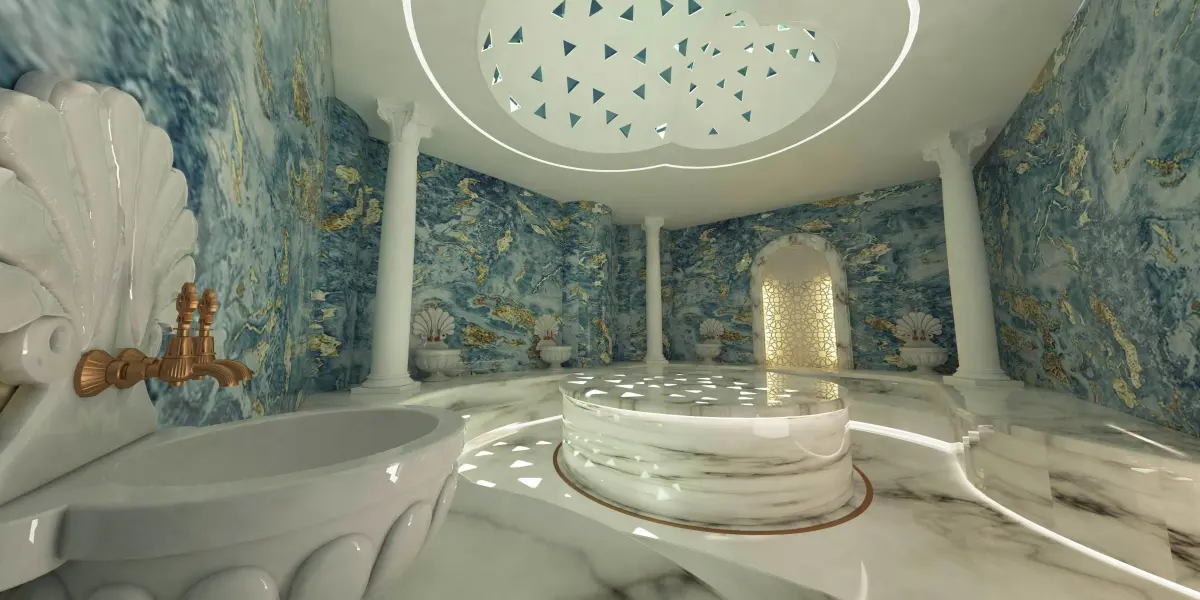 DescriptionA traditional Turkish hamam model with modern turquoise seramics. Details close in appearance is of high quality. Textures was published for you if you want all materials can be easily modified in the materials editor. It can be made in different colors and textures. UVW map can be interfered with. The drawing steps of the model are protected. Changes can be made if requested. It is instructive.