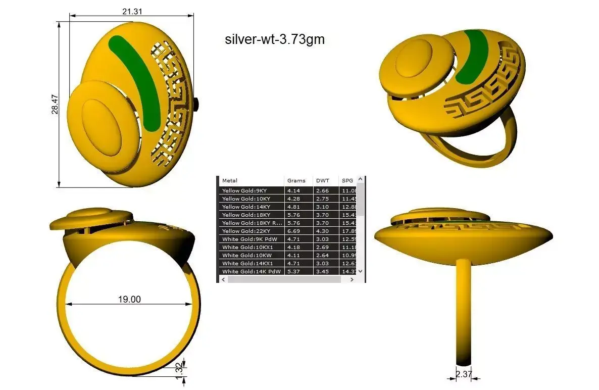These handcrafted-style CAD models reflect the rich heritage of Turkish jewelry — intricate filigree patterns, smooth curves, and bold color detailing. The designs are optimized for 14K / 18K gold, silver, or brass casting, and the enamel areas are carefully planned for easy coloring or resin filling during production.