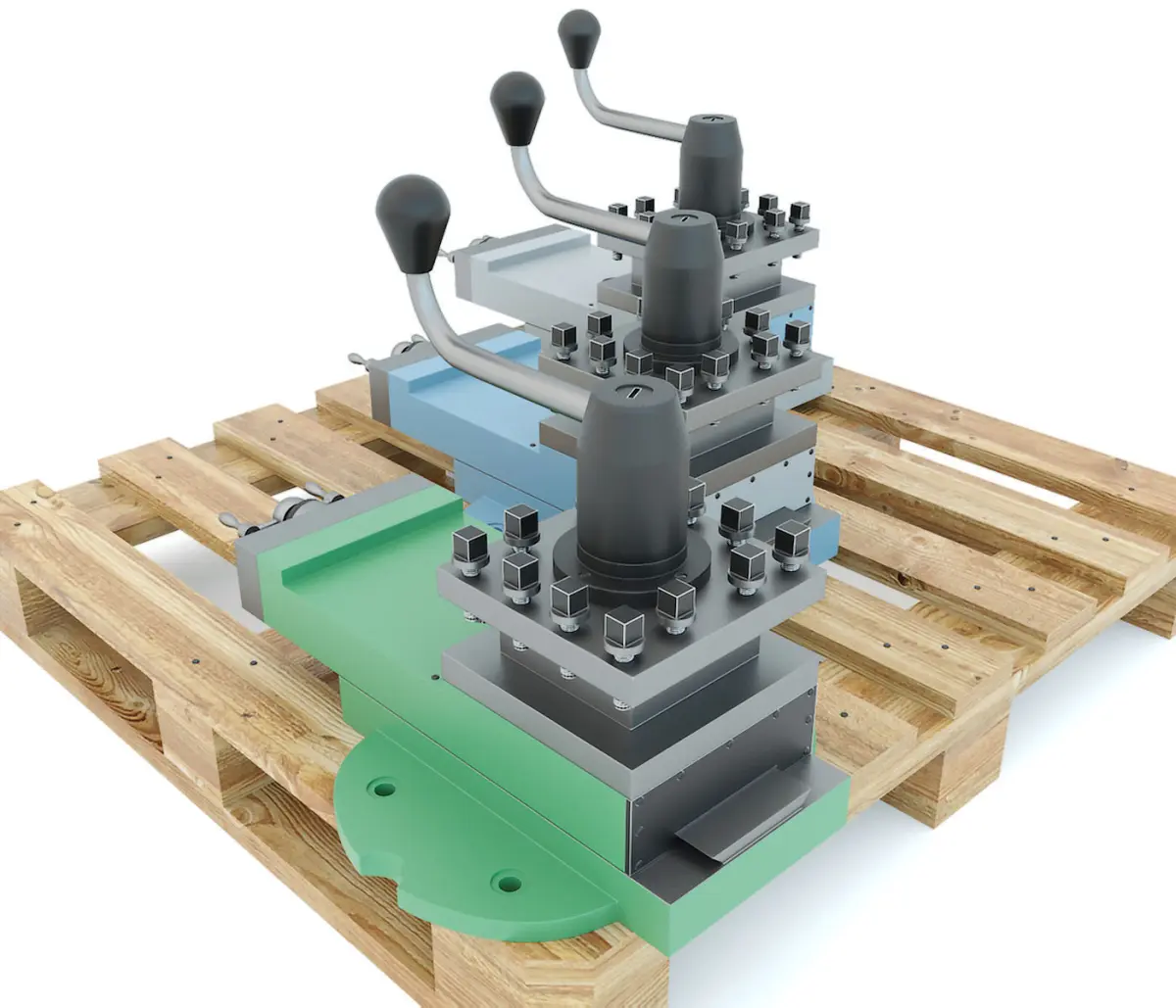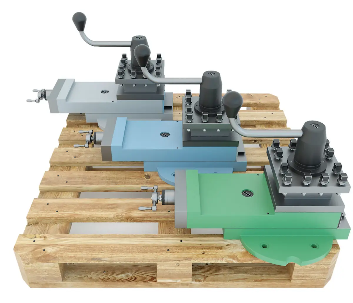 3d model: The lathe certainly has a large number of very diverse elements and other components, on the basis of which and the most efficient operation of machine tools is performed. Here is just one of these most important machine components we can offer for purchase in a separate lot. We are talking about the so-called caliper of this model of equipment, which is executed in the most detailed feed. In addition, by purchasing this 3d model, you get it immediately in three color options, namely: Green, Gray, Blue. After all, for different industrial tasks, it will be necessary apply a variety of paint. In addition, the collection includes a wooden pallet, on which just for convenience, all three are located calipers. Thus, it turns out to be as convenient as possible to integrate the entire presented industrial collection into the most diverse, but mainly industrial project. At the same time, the pallet has its own texture in the resolution of 3K or 3000X300. We highly recommend the proposed high-quality an industrial model to purchase.