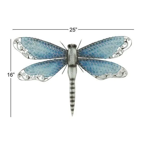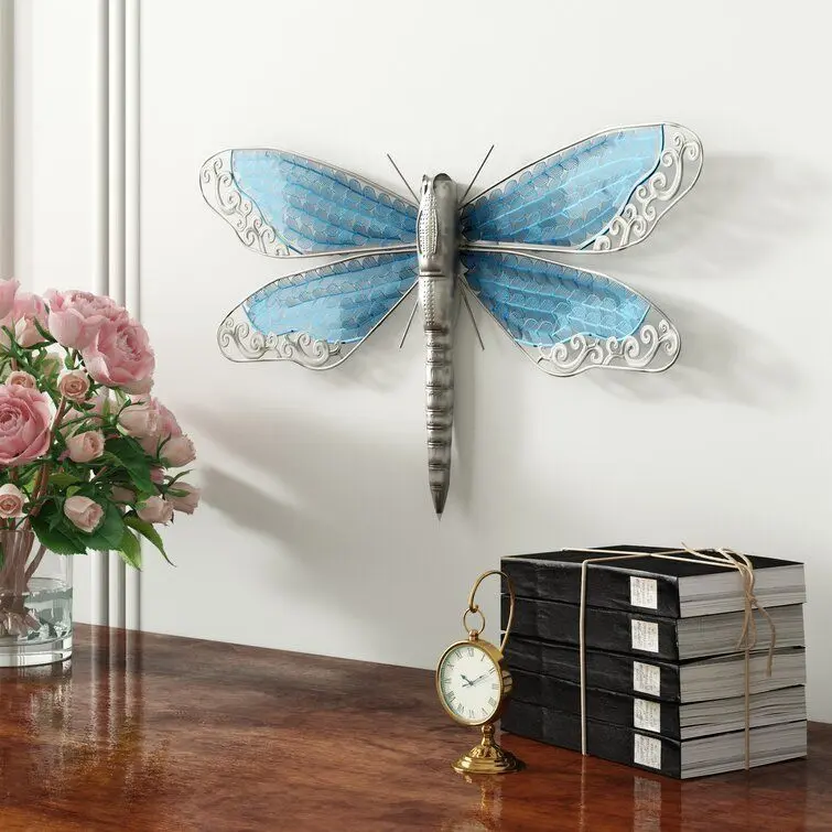 - Add some bit of eclectic-inspired insect decoration into your rustic, industrial, and ambient-styled home with this silver and blue dragonfly wall art!