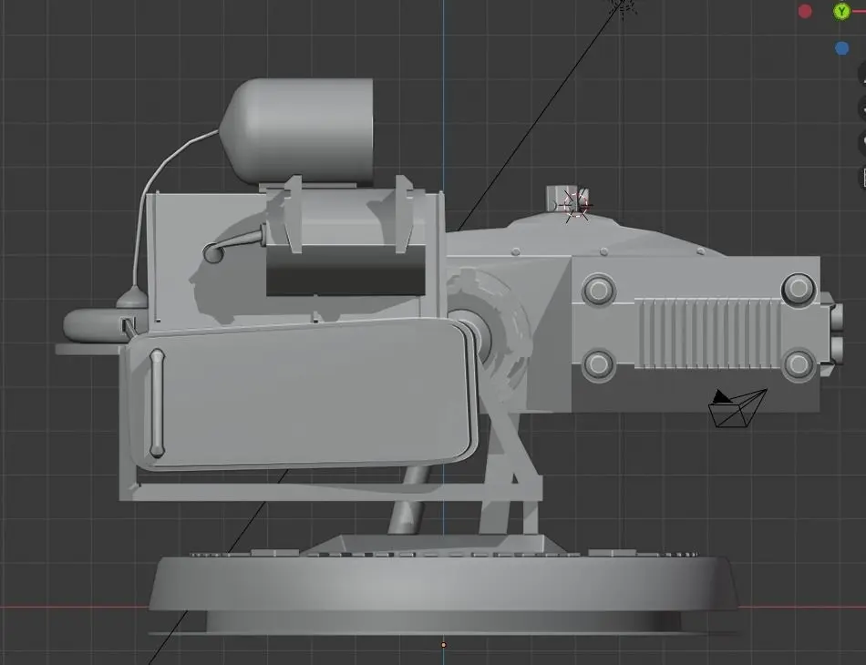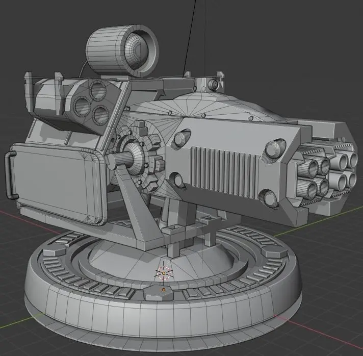 I made it in Blender 2.82. I used the mirror modifier. I haven't rigged or animated it. It's just a turret. I tried to make PBR model.