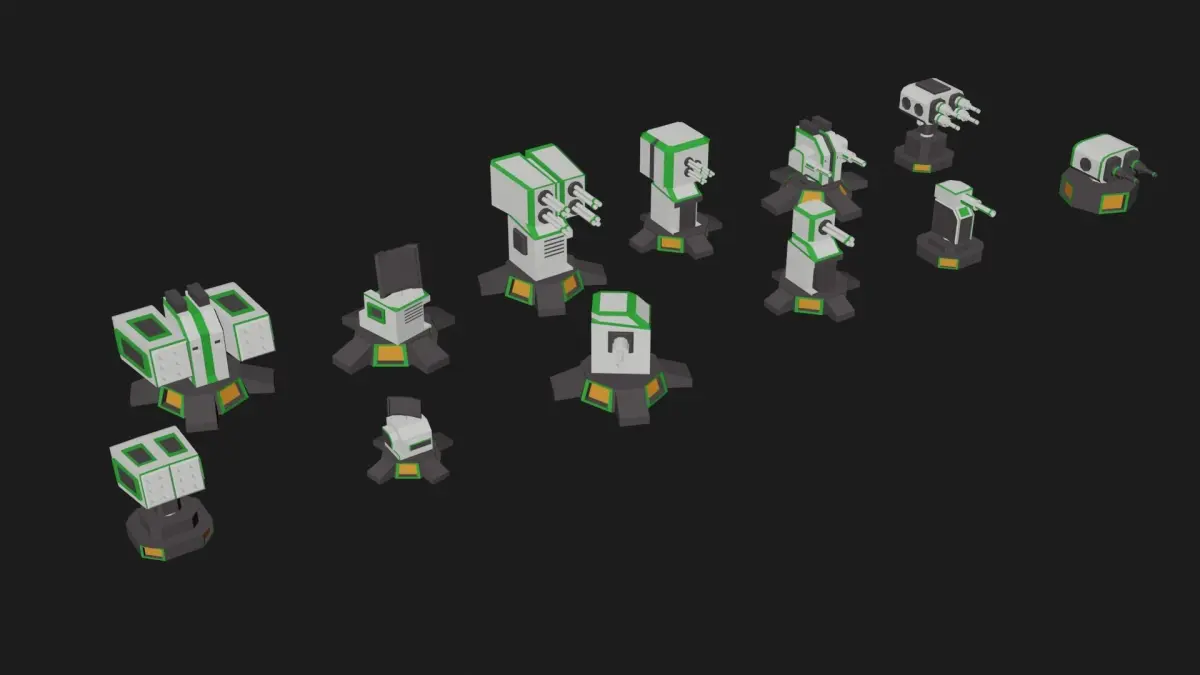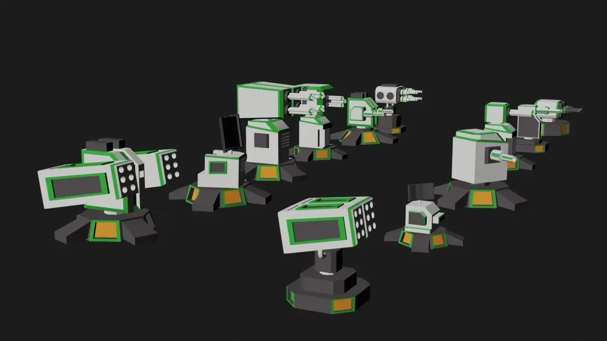 Turret Weapon Pack - 12 Guns lowpoly 3d model made wth blender.12 different lowpoly turret guns.easy to make any type of tower defense game and shooting games.compatible for unity3d, unreal engine and cryengine also optimized for mobile devices android and ios!