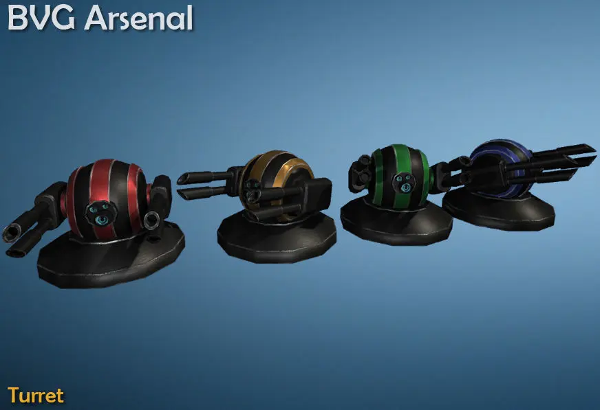 This package contains 4 high quality, low- poly (game-ready) turrets for close up renders.