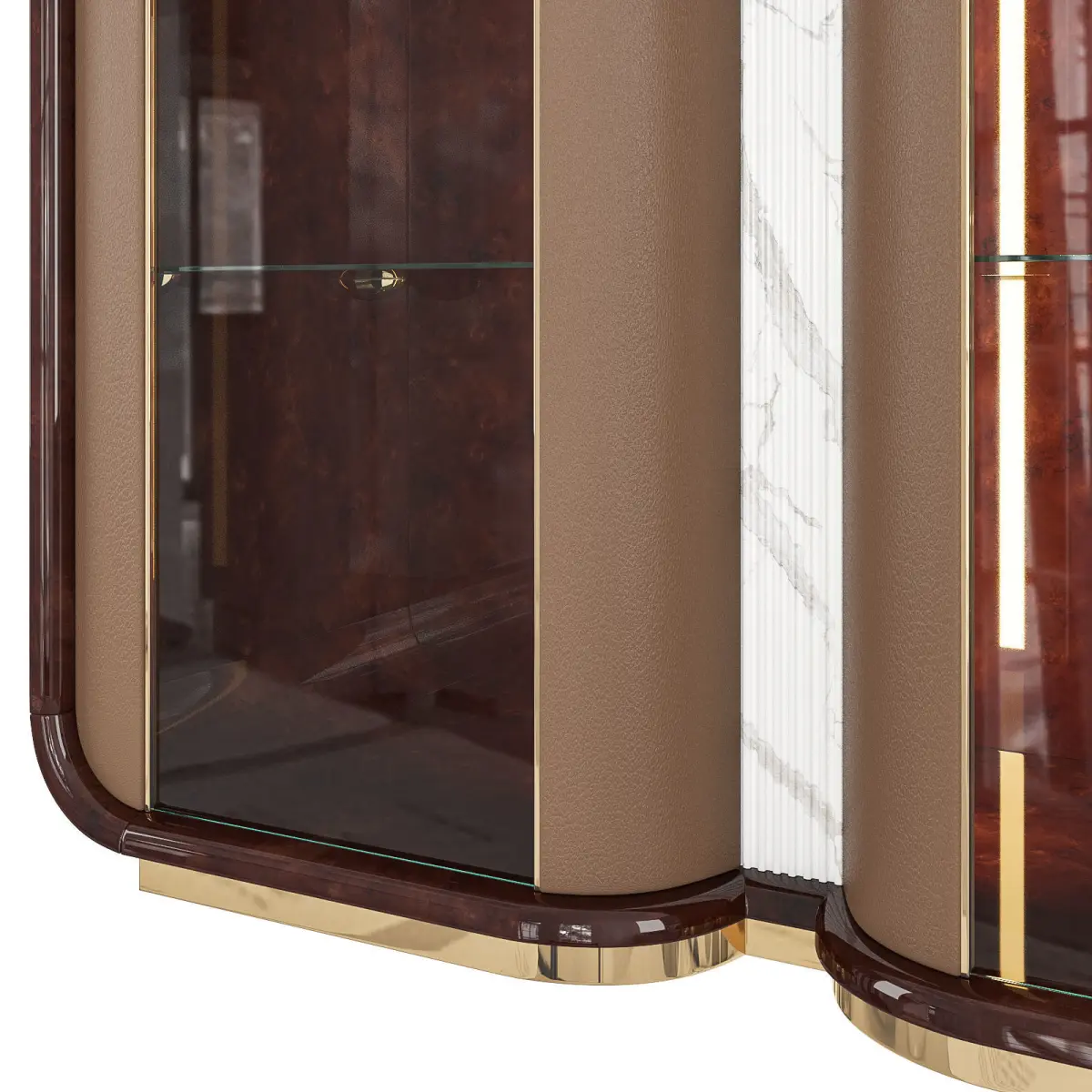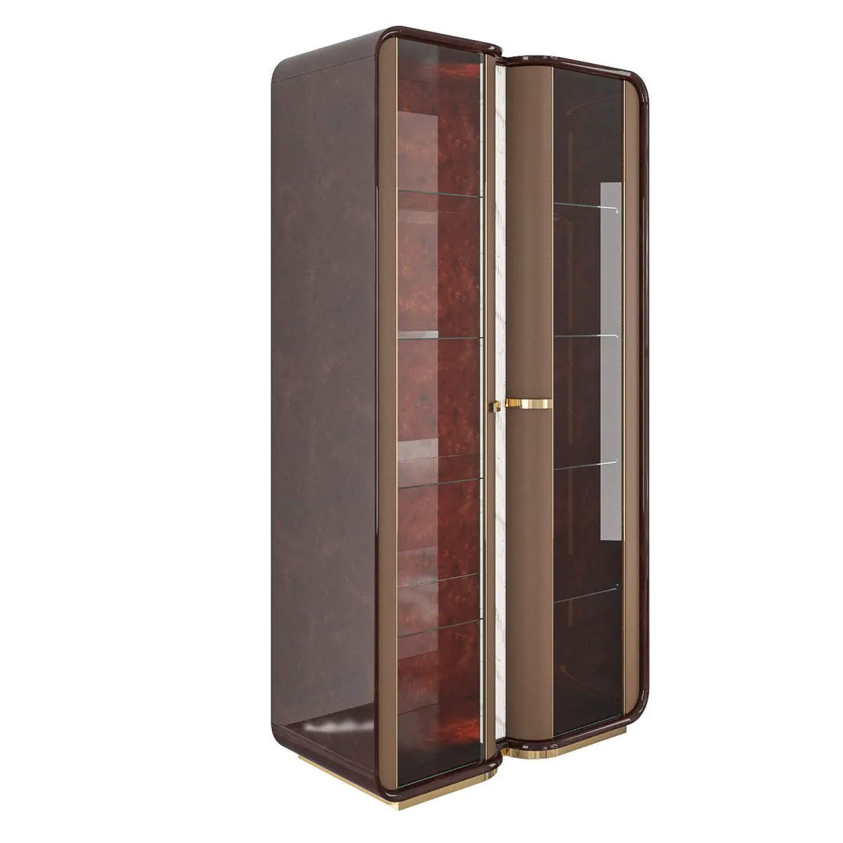Factory: TurriCollection: MadisonName: VitrineType: Wooden Vitrine with integrated lightingMaterials: Leather, Wood, Metall.Designers: Andrea Bonini