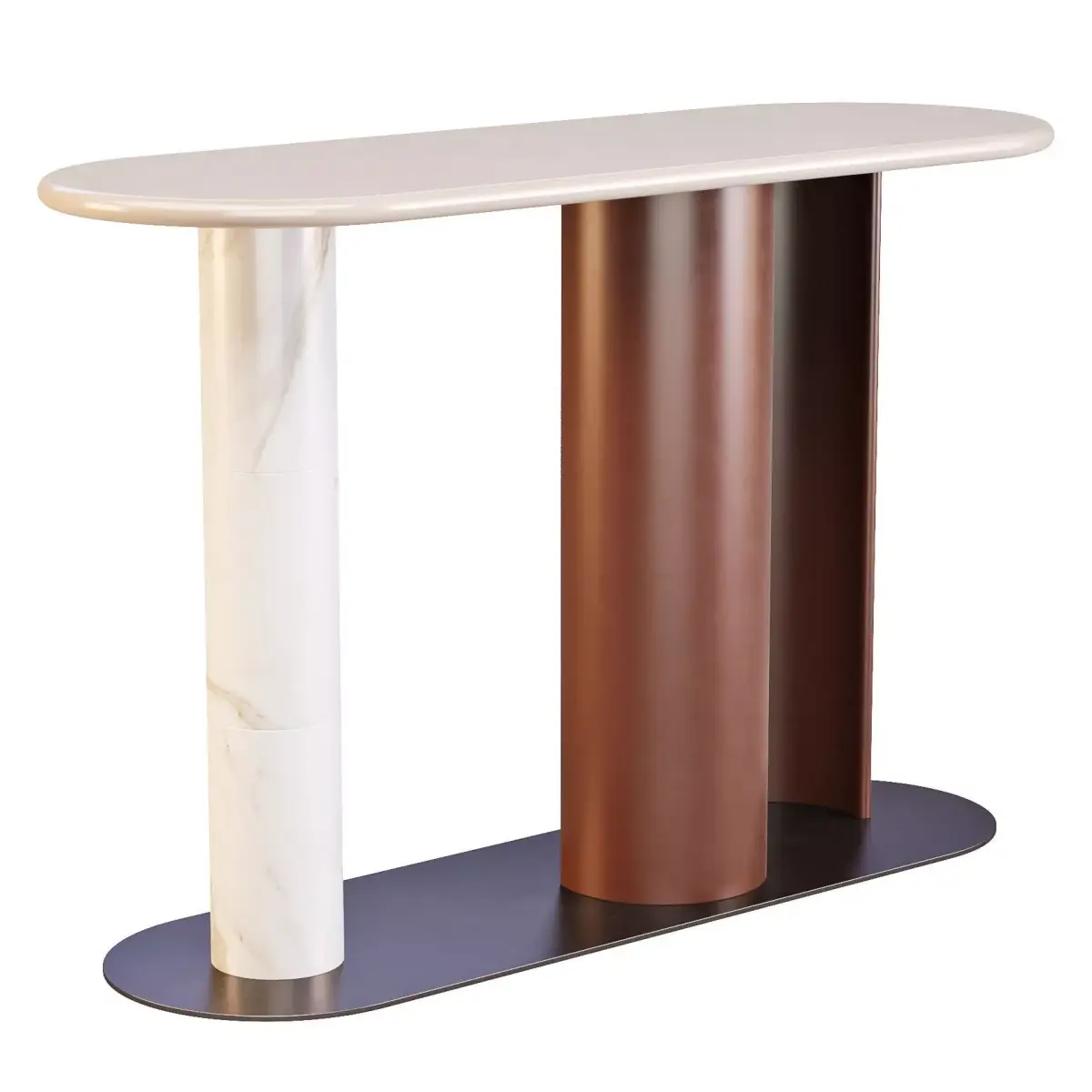 - The Nook console plays with proportions and with the combination of materials available in the catalogue. The structure, entirely covered in leather, creates an effect of continuity between the surfaces, emphasizing the delicacy of the finishes. The top is available fully lacquered for a more compact and contemporary look. Also for the console, the marble pilaster is available in the finishes Calacatta, Nero Marquinia, Emperador Light, Verde Alpi and Botticino, to give an aesthetic coordinated with the other elements of the collection.