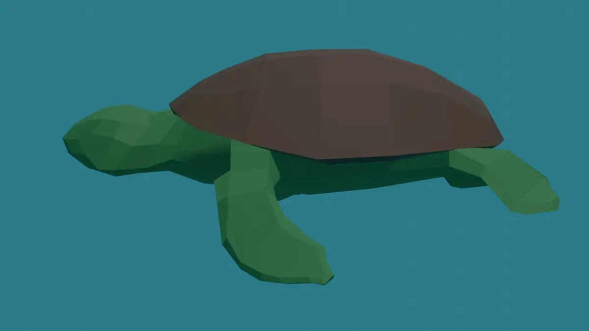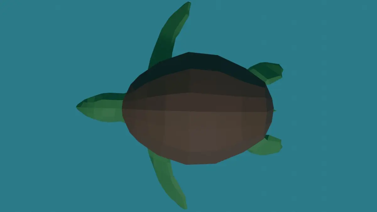 A rigged turtle with a swimming animation. If you would like to download the full underwater pack you can visit my [my itch page](https://rkuhlf-assets.itch.io/), or check out my account to download the rest of the models individually.