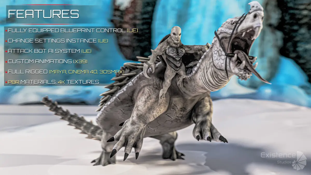 Explore a Frozen Fantasy World:Dive into a world of stunning realism as you navigate the icy wilderness with your mount. With this rigged monster animation, you can bring your winter-themed game to life and experience the beauty of nature, even under the snow.