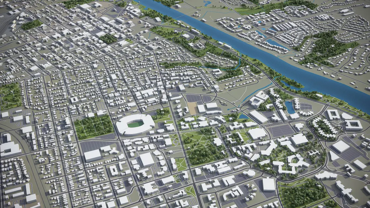 - Full city extents up to 100 x 100 km — or crop to an area of interest for better format compability and scene performance