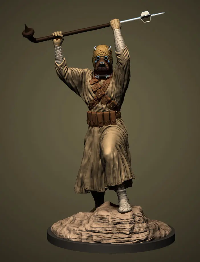 Hi everyone, this is my new project, a detailed model of one of the most iconic aliens from star wars series, the tuskan reider model has a high detail in all its parts and it is in attack position.