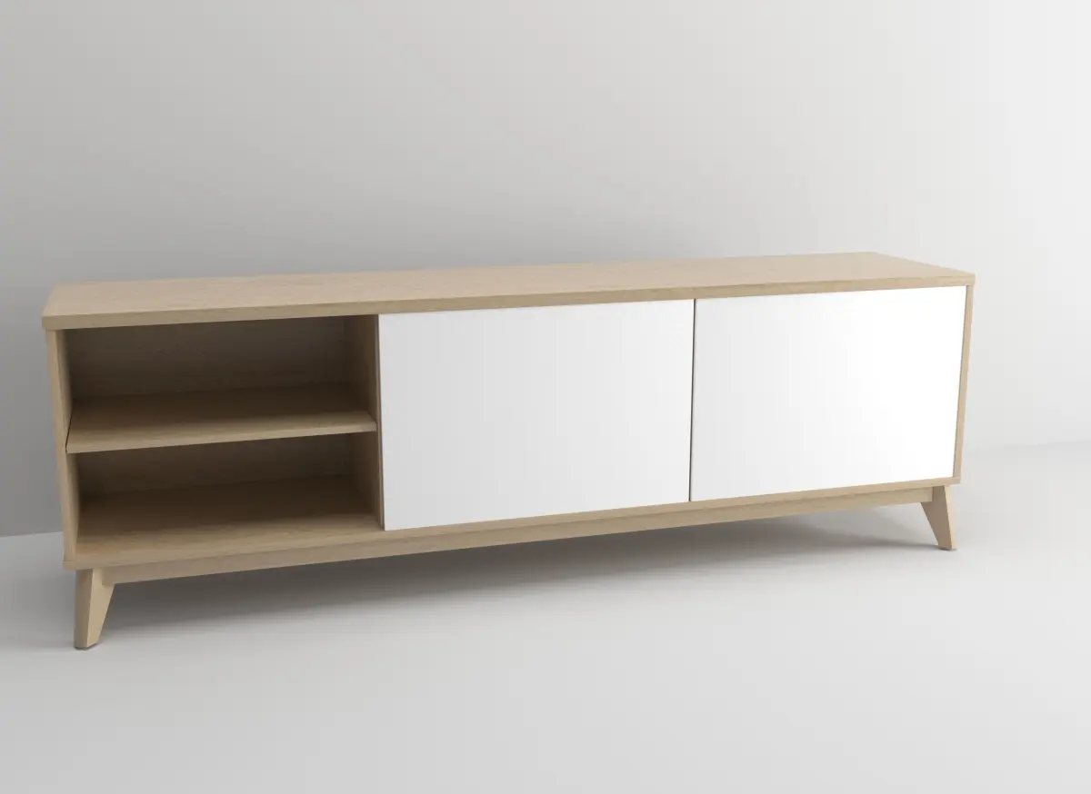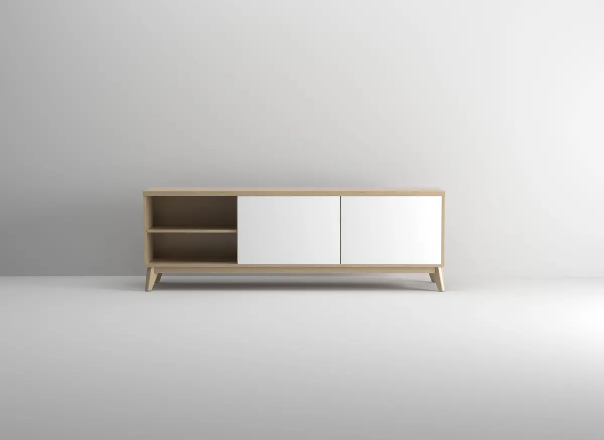 Tv bench with white doors - in light wood material