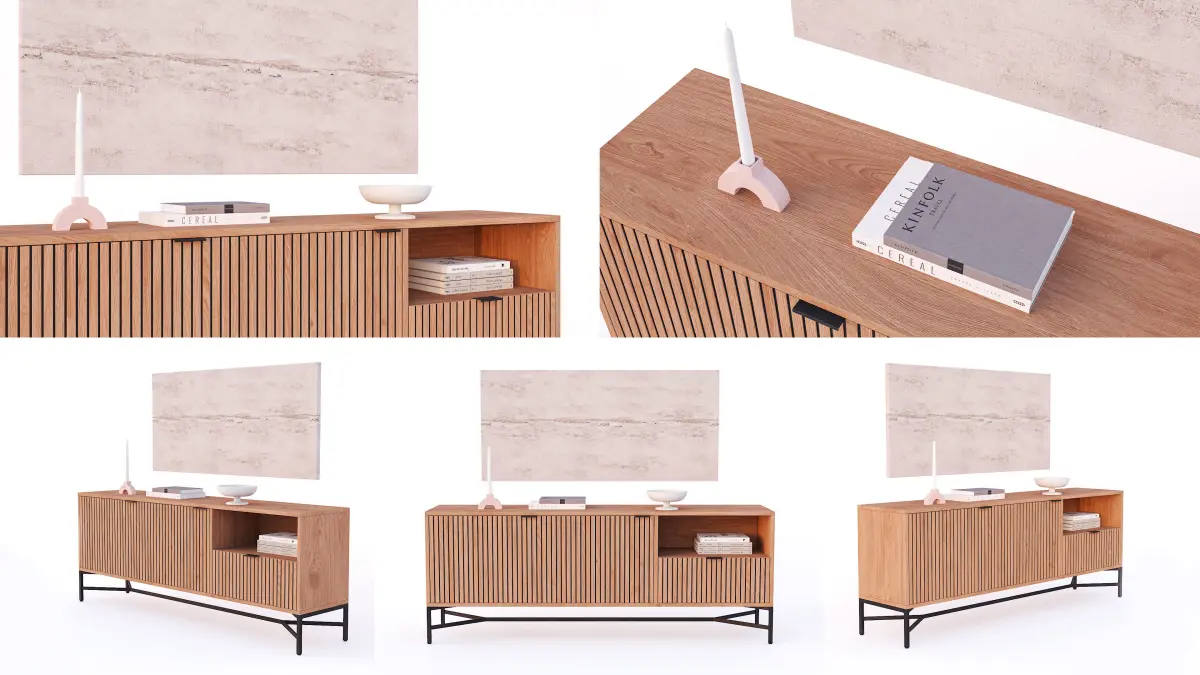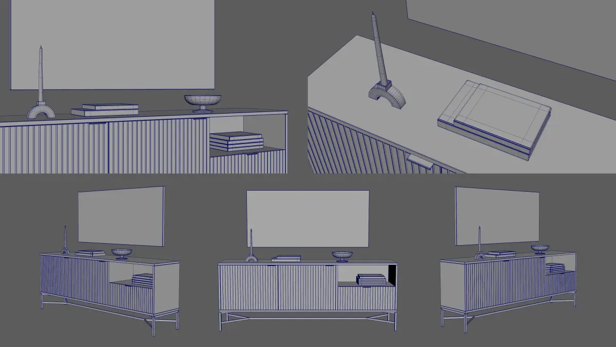You get a 3d model of lowboard jaipur, with the decoration you see in the white studio renderings.