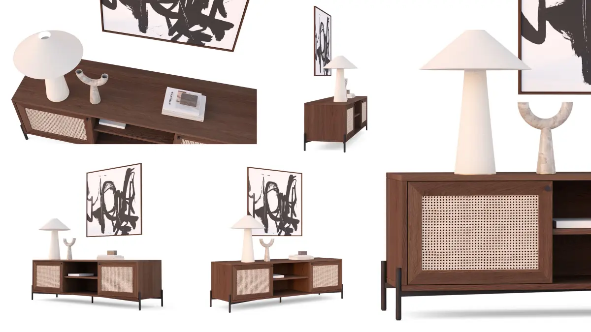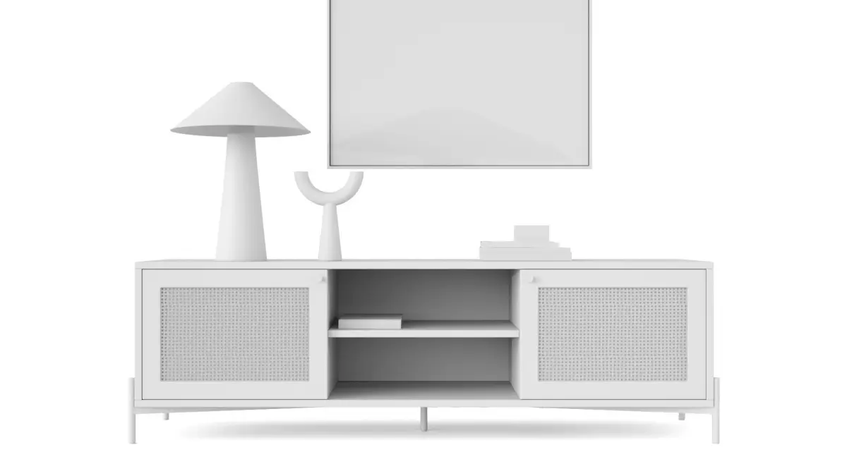 You get a realistic 3d model of lowboad vienna with the deco you see in the white studio renderings.