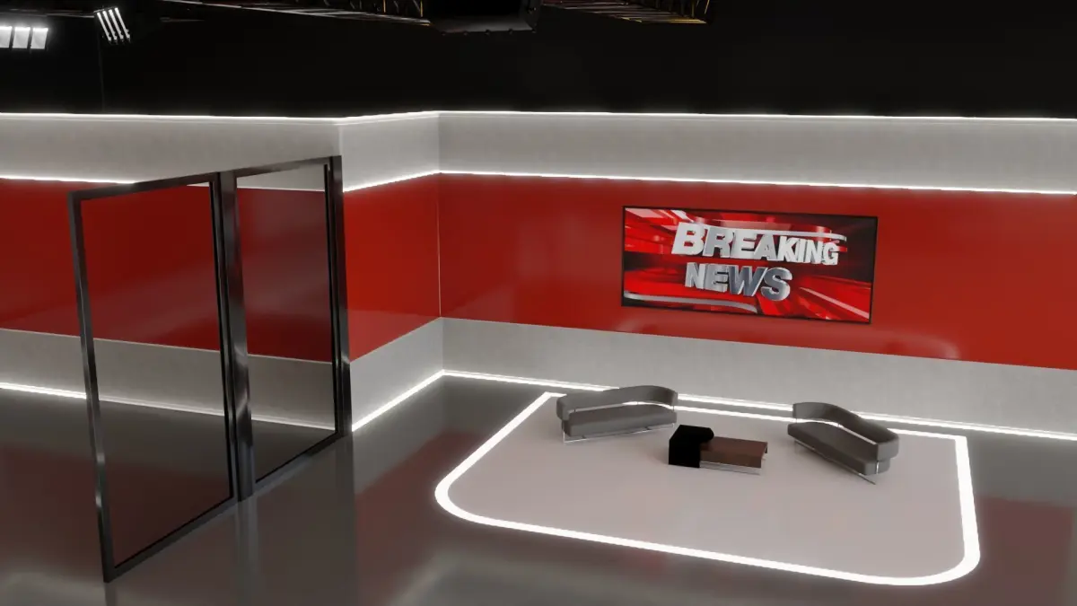Photorealistic, high-quality model of 'TV Studio News' Originally modeled in Blender 3.6. The model is suitable for Ultra HD rendering and ready for close up shots advertising, design visualization, etc . The model rendering quality is shown in product previews.