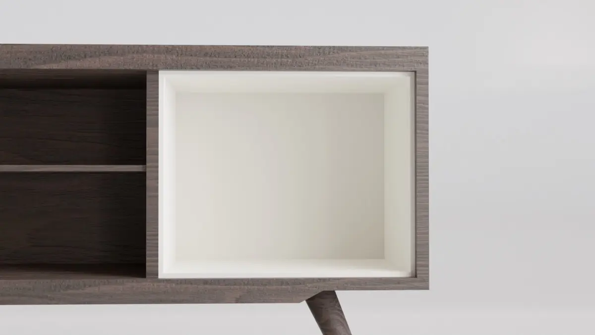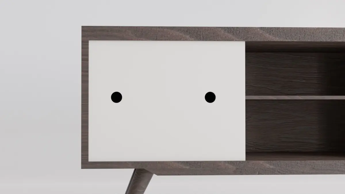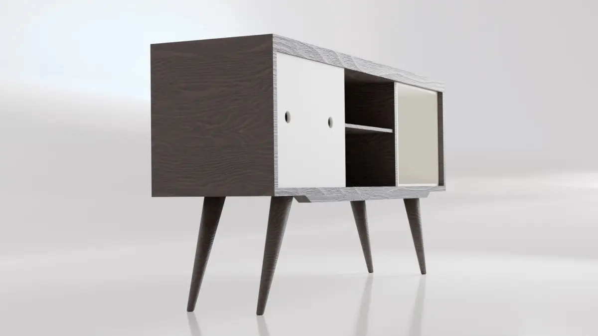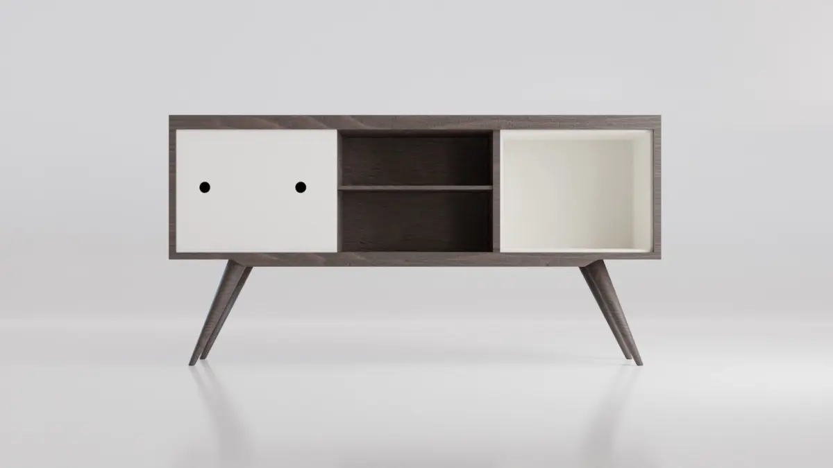 - The blender scene contains the TV Rack Shelf Retro model, a studio background and an area light.