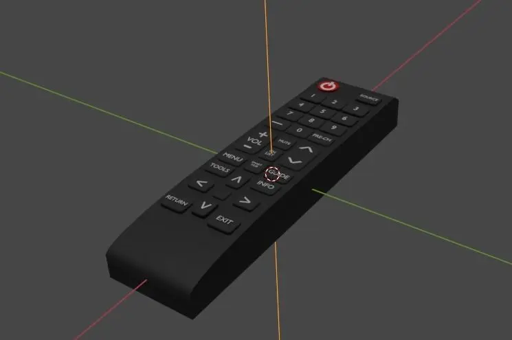 This is a model of a tv remote with a high face count, meant for high quality animations, and it even has the IR light on it, and you can turn up the emission strength in the material to turn the light on.