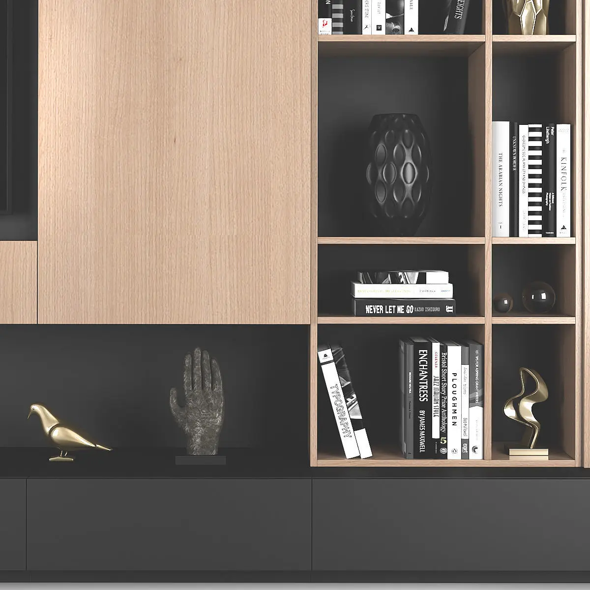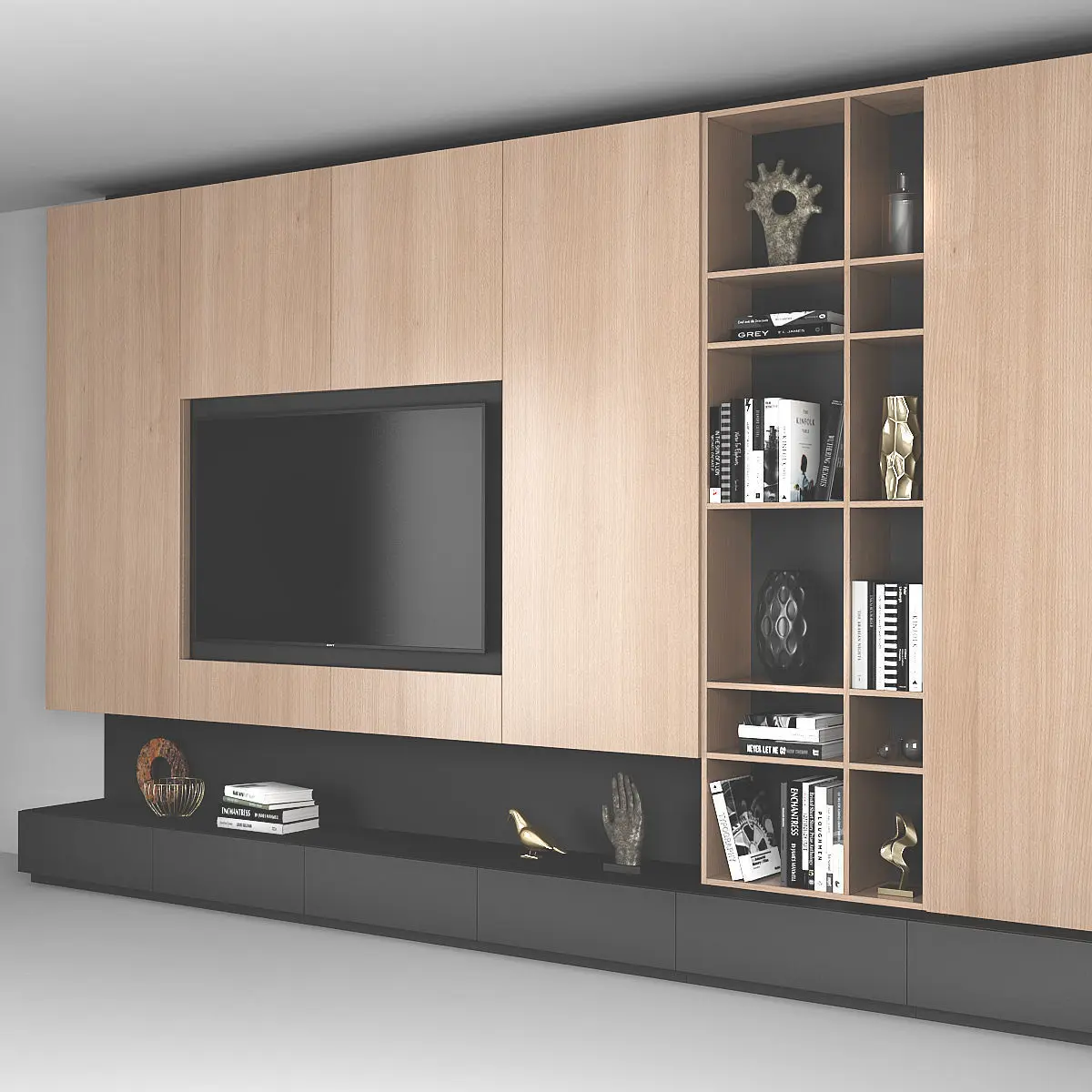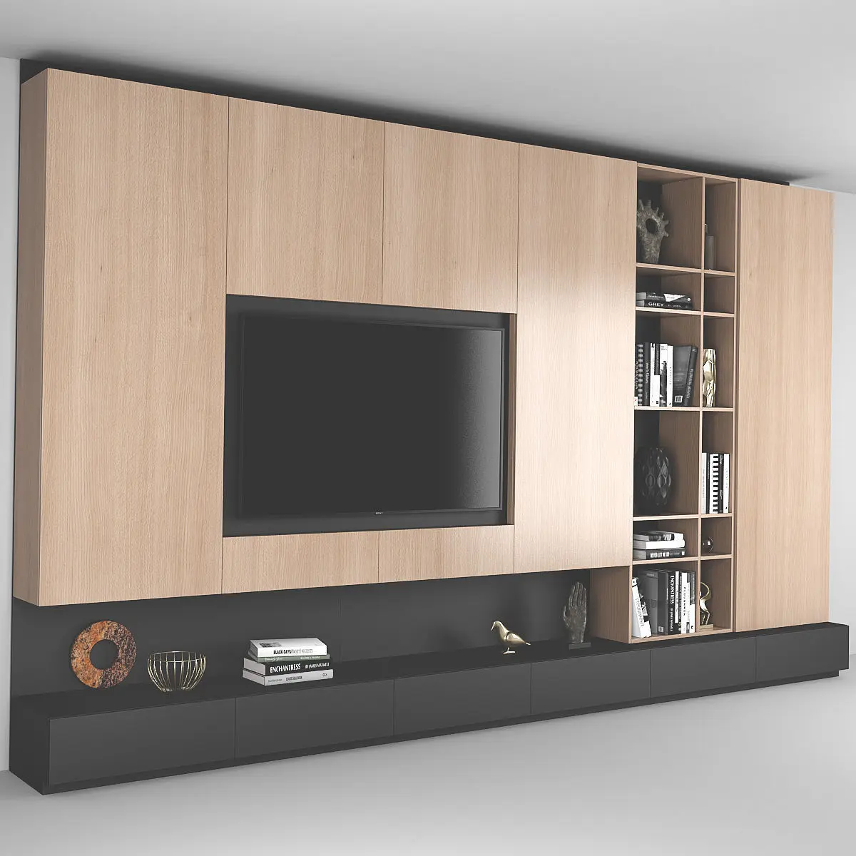 TV wall with decor. Dimensions: 4800 (W) x 3000 (H) x 500 (D) mm Render: V-Ray 2,20 Formats: 3ds Max 2010, FBX