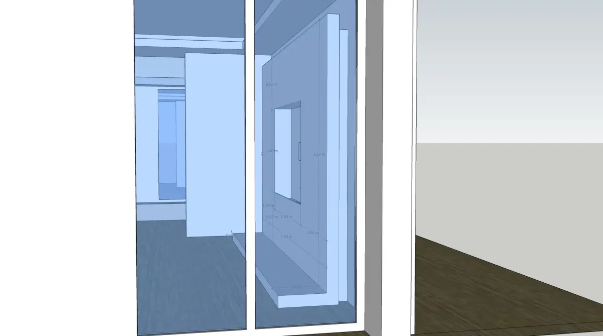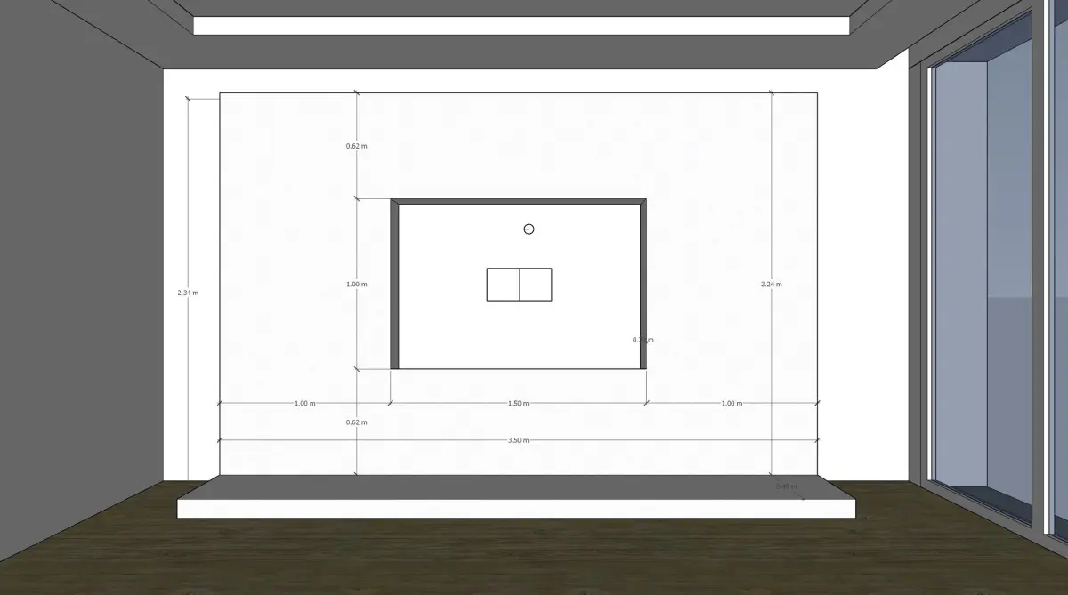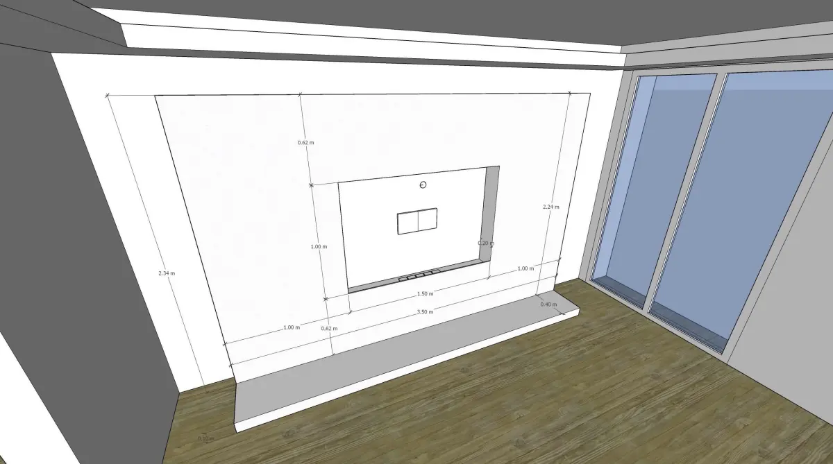 i designed this wall-mounted tv stand in living room restoration project and i modeled it with sketchup 2023 it doesnt have material and you can apply any one on the model the opening in the middle of stand is for a 65'' tv size .