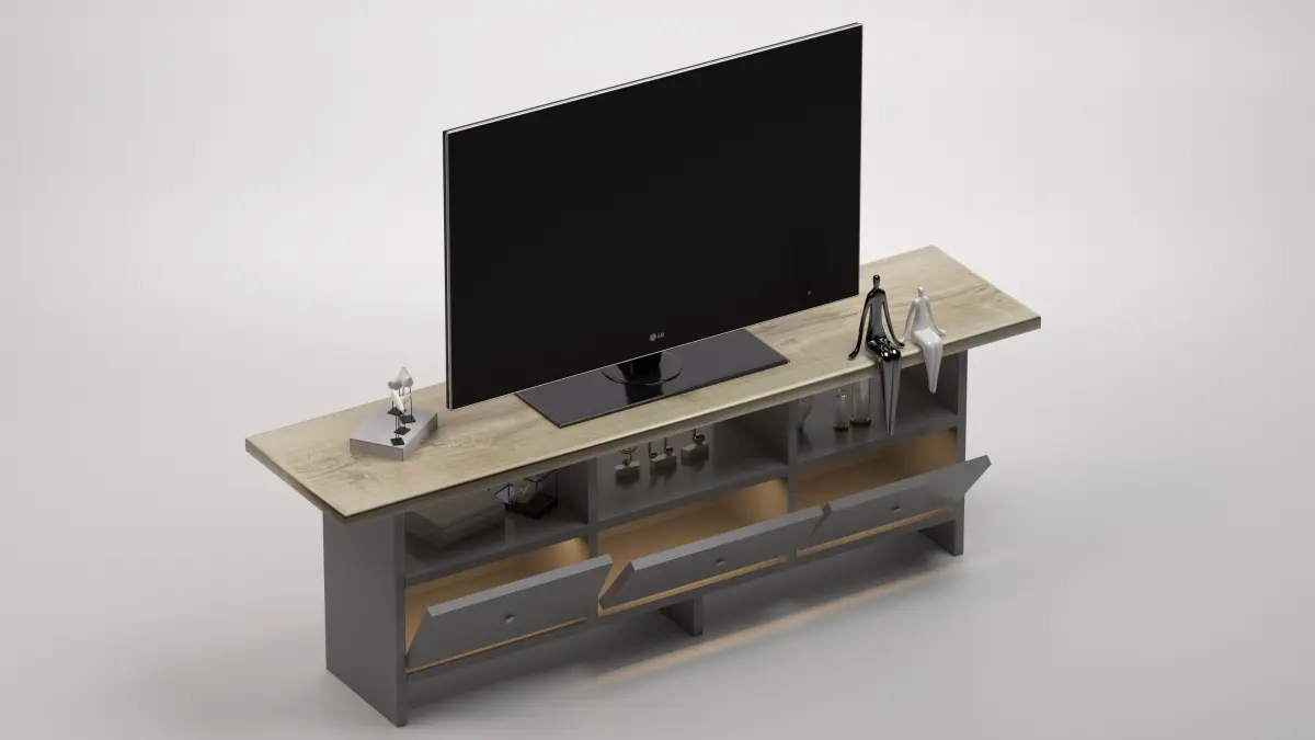 Hello, I am patient. First of all, thank you for your feedback on my previous models. I evaluated these ideas and decided to model a new TV Stand. The size of this model is 1500x360x470 mm. Units millimeters. The number of polygons is 365,754. Vertex - 264.365. Gives a very good result in the rendering. I recommend you download.Sincerely, Mirizada.Size:1500x360x470 mmPolygon: 365.754Vertex:264.365