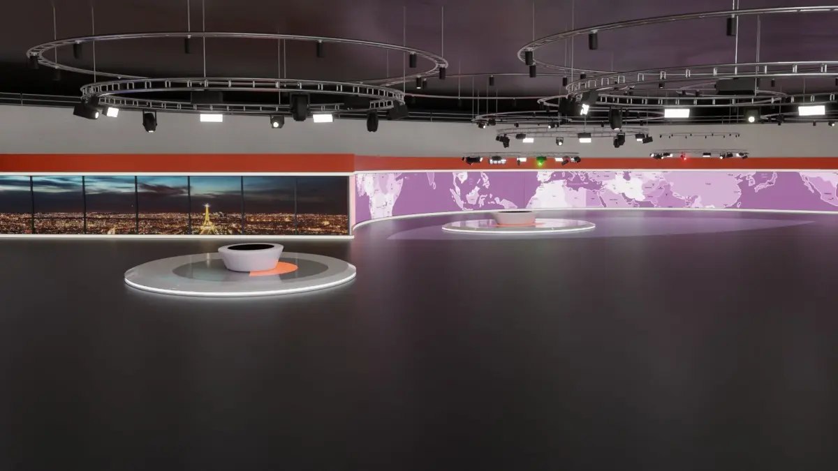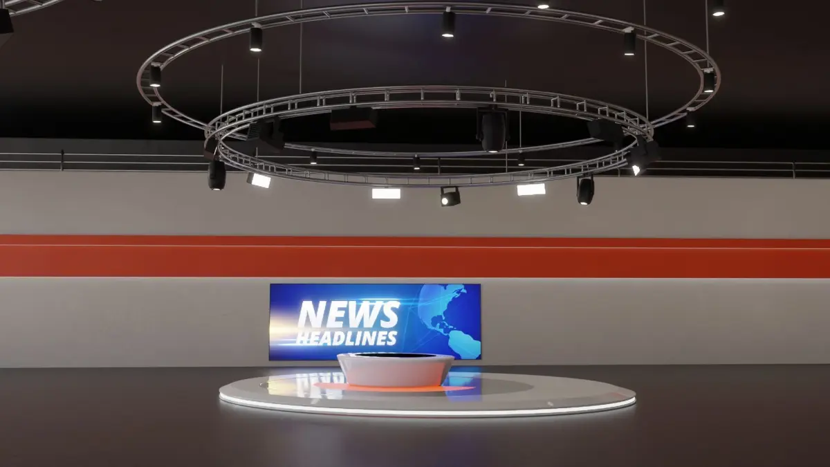 Photorealistic, high-quality model of 'TV Studio News' Originally modeled in Blender 3.6. The model is suitable for Ultra HD rendering and ready for close up shots advertising, design visualization, etc . The model rendering quality is shown in product previews.