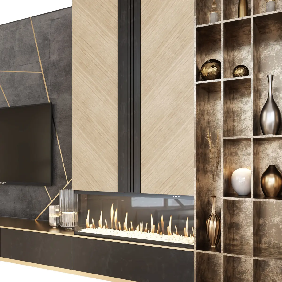 • texturesTV wall with decor.