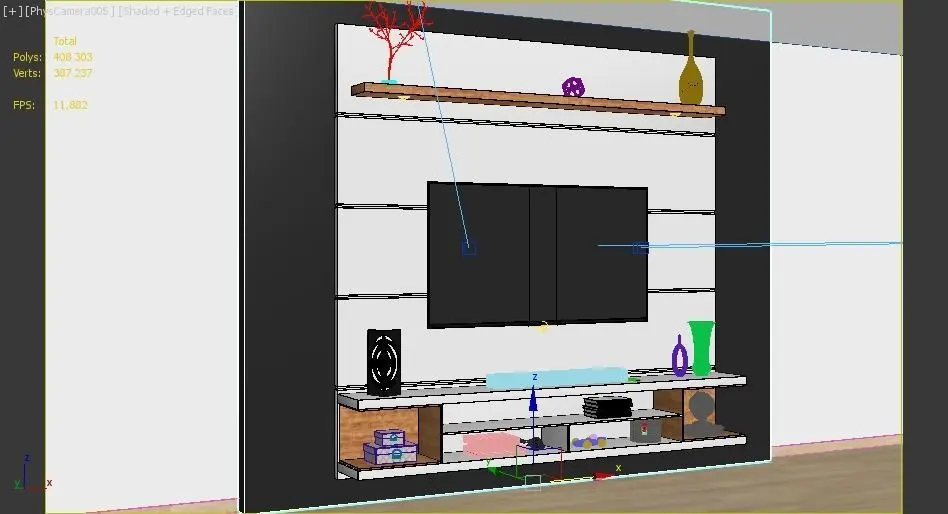 A 3d model of TV model with lighting, textures and furnitures. The project was made nativally with 3dsmax 2016.
