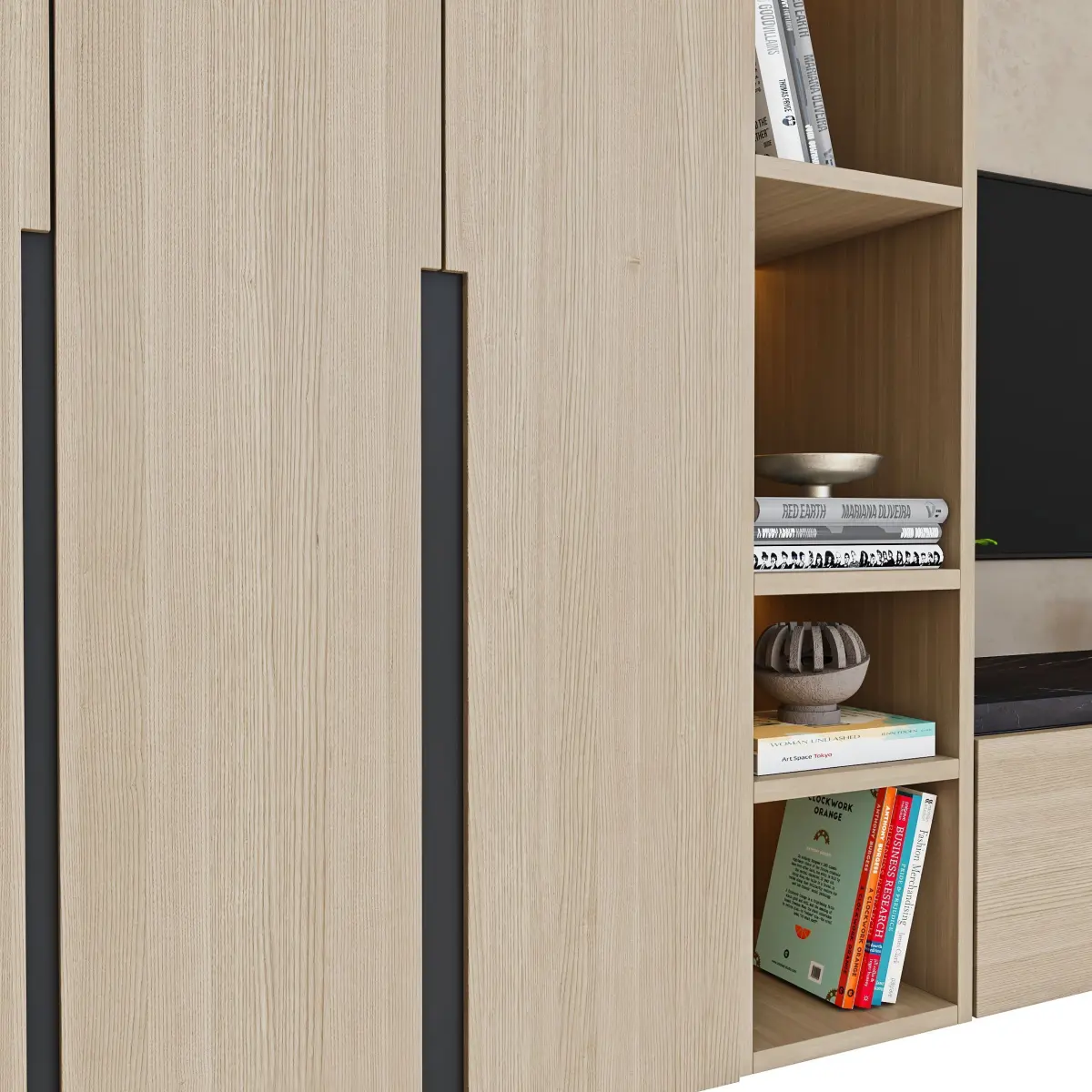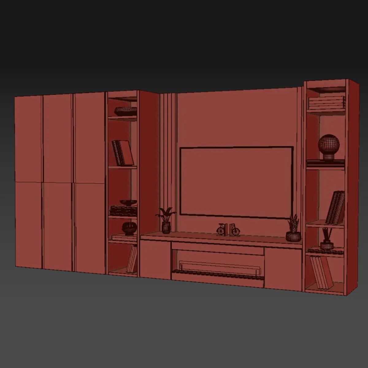Name: tv wall 7-2Type: modelFormat: 3Ds Max 2015Export: FBX, MATRender: VRay (6.x)Polys: 93188Verts: 89896Matclasses: Multimaterial,VRayMtl,VRayLightMtlUnits: InchesDimension: 78.53 x 11.36 x 40.92Date: 2025.7.3