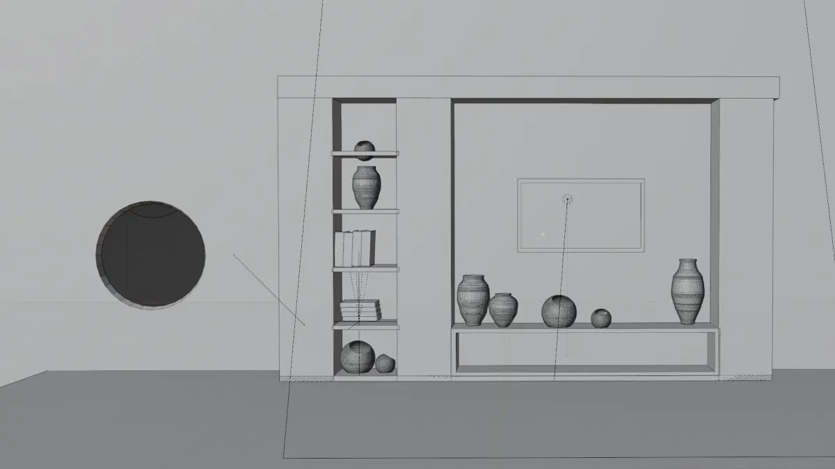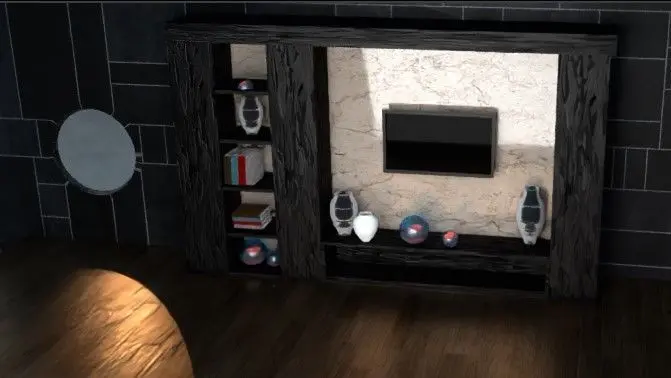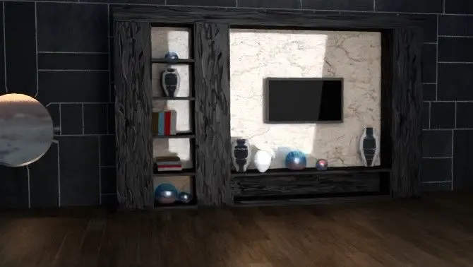 Modern tv wall | All setup in modern tv wall 3d modelIn this scene - Books | Vases | Tv. | Flower glass bowl