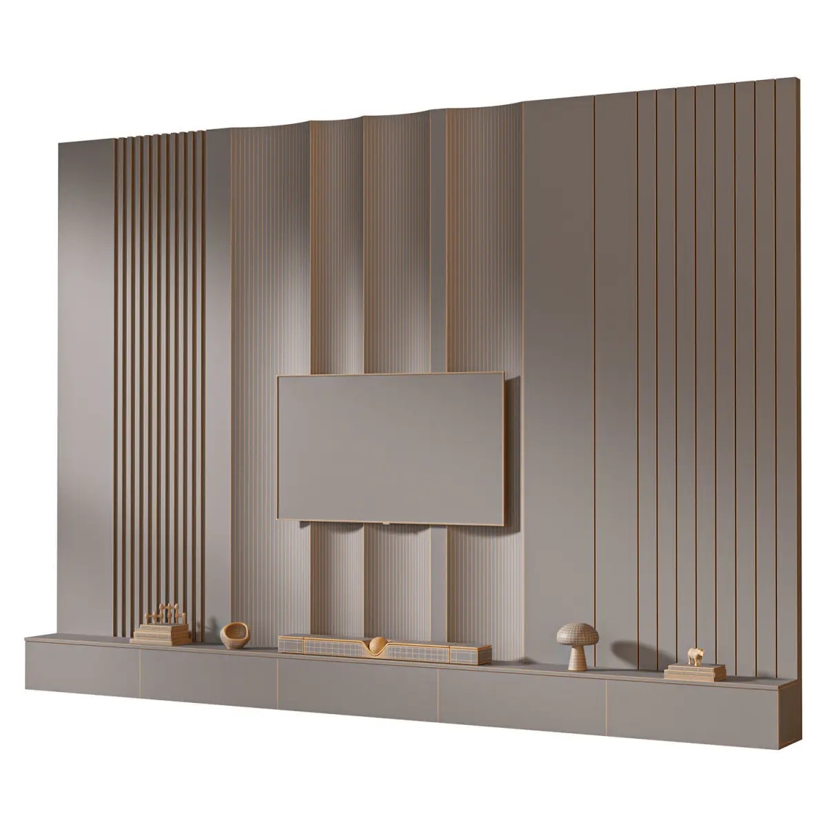 Name: TV wallType: modelFormat: 3Ds Max 2018Export: FBX, OBJ, MATRender: Corona (6), VrayPolys: 68368Verts: 68725Units: MillimetersDimension: 4499.98 x 373.4 x 3200.0