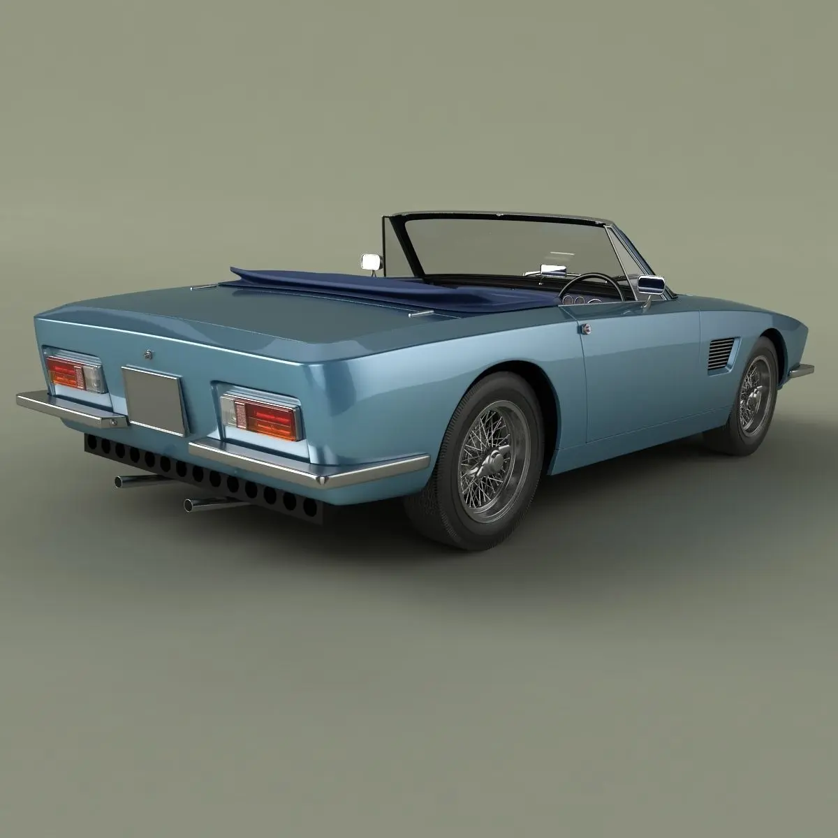 High detailed, correctly scaled model of 1967 TVR Trident Convertible concept . Originally created with 3ds Max 8. Rendered with V-Ray, files with standard materials are included. Unit system is set to metric units. Model is built to real-world scale. Geometry is Editable Poly (quads/tris only). TurboSmooth is use separately to objects (63 of 110 named objects) with iterations 2 ( 629321 polys, 365661 vert.) Each file was checked before upload. Materials and textures are included (3 textures - jpg 1024X1024).