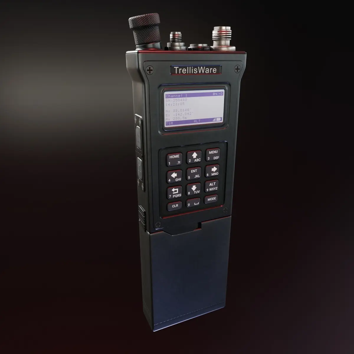Tactical network device from TrellisWare. Or as other people call it: Radio, but fancy one, as it support 16mbps data transfer and HD video encoding, gps and relay for like 32 talk groups.