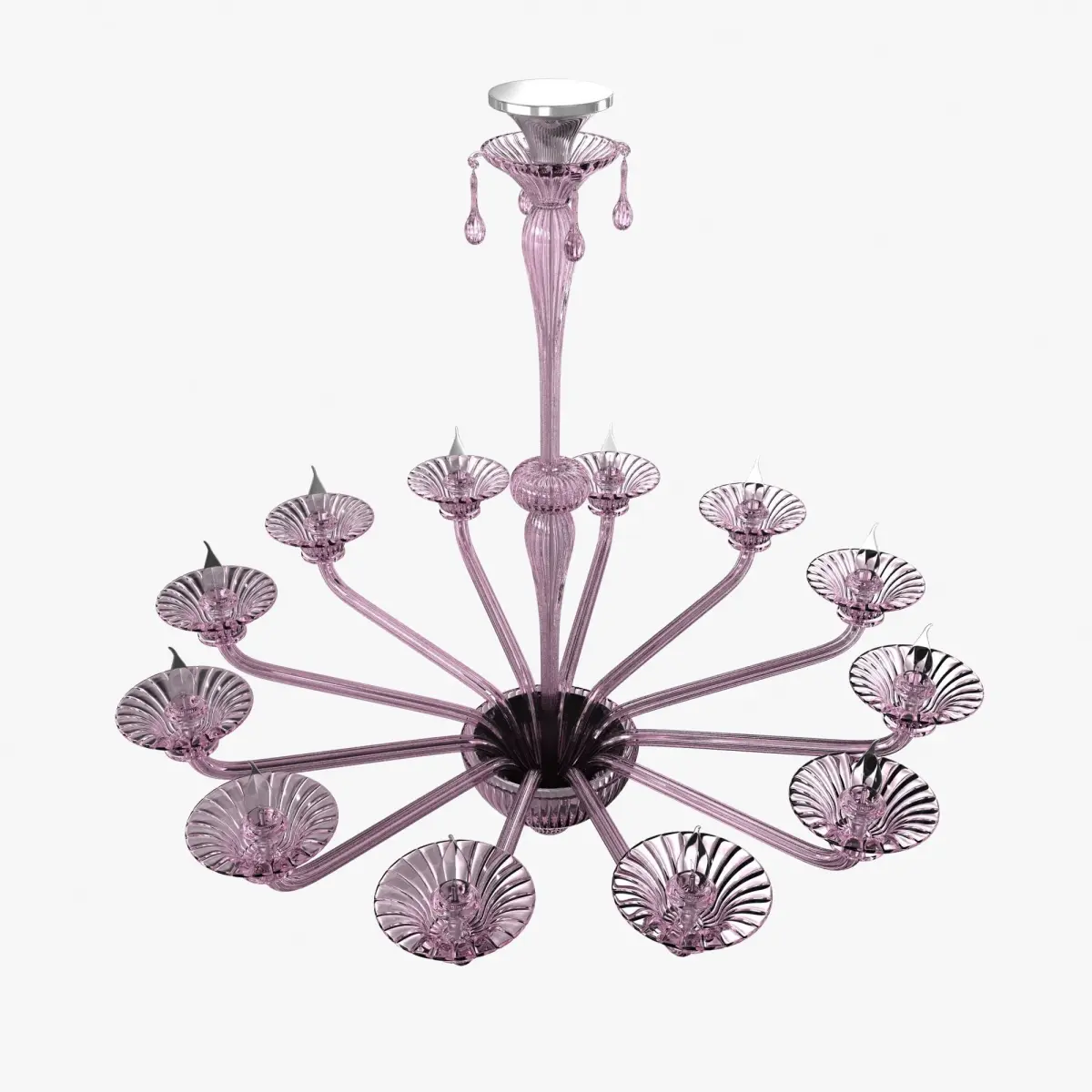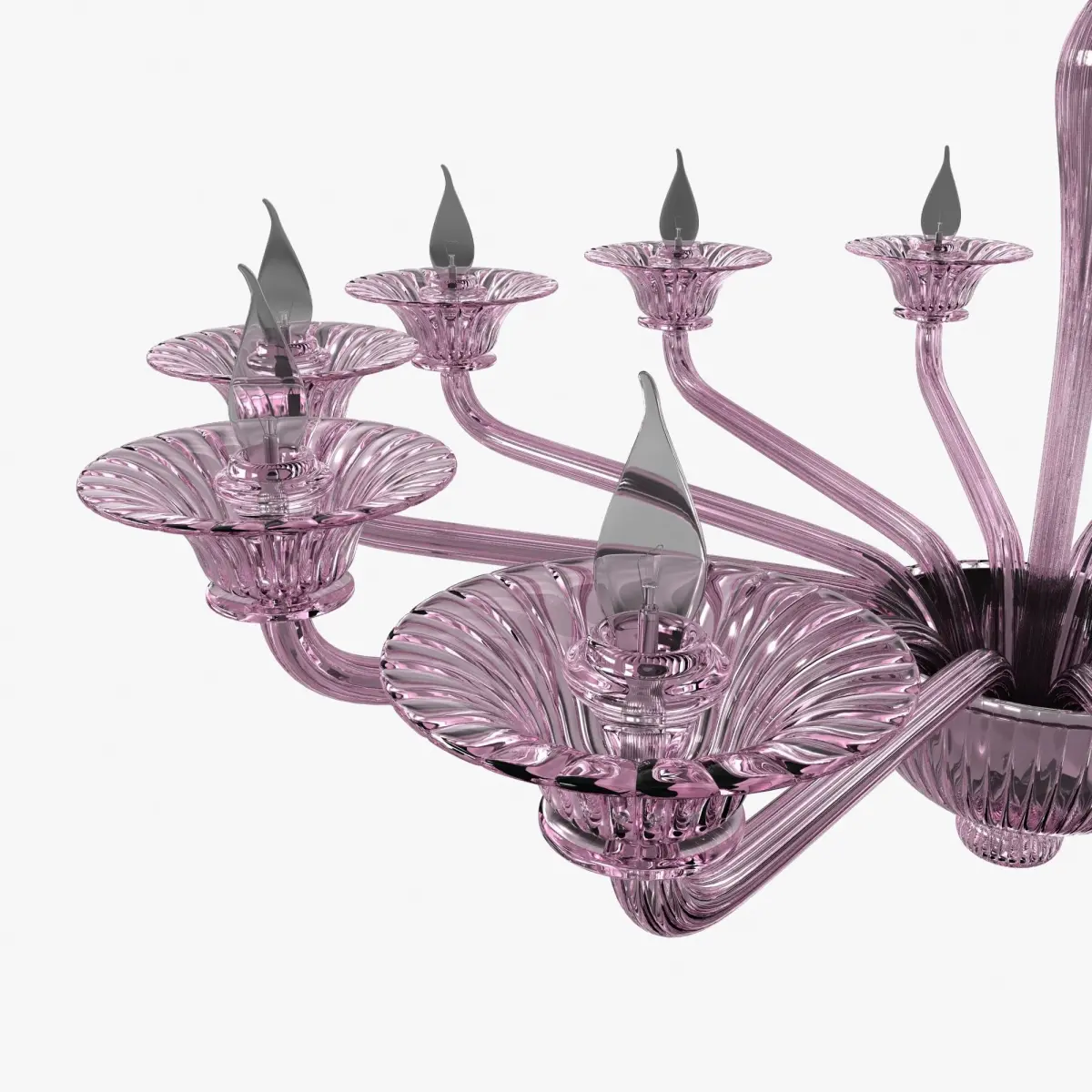Twelve-Arm Handblown Murano Glass Venetian Chandelier by Veninirose glassbulb style - candlesmade in italyclassic flower style glass decor