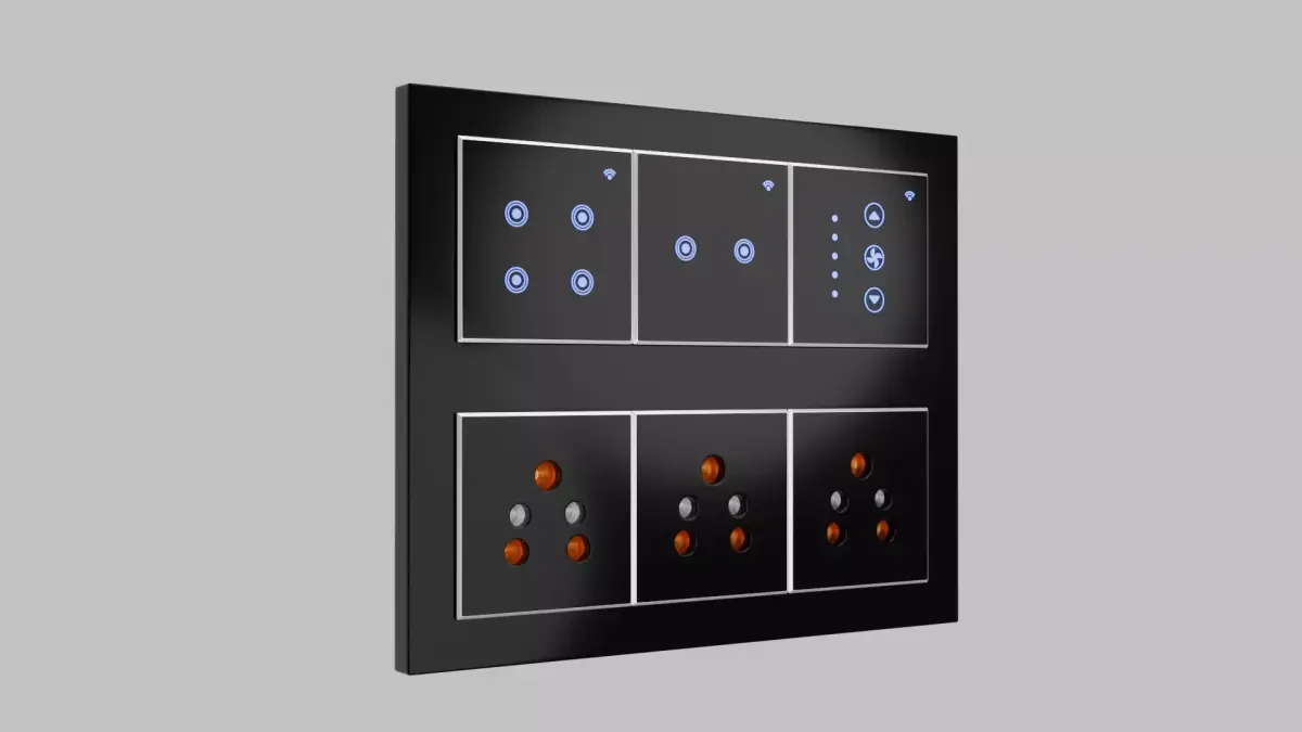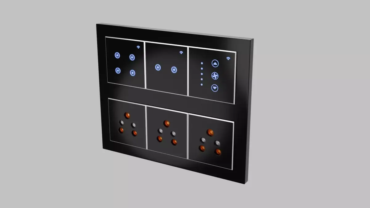 Twelve Module Plate Design of Switch Board modeled in Blender 4.5 and rendered in cycles.