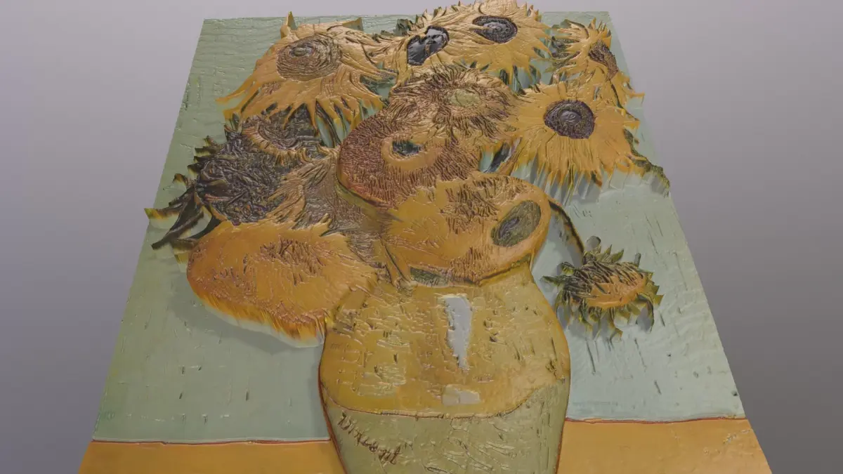 Great 3d model of a bas-relief based on the famous painting TWELVE SUNFLOWERS by VINCENT VAN GOGH. 3d model for cnc machine, 3d printer and laser engravement.