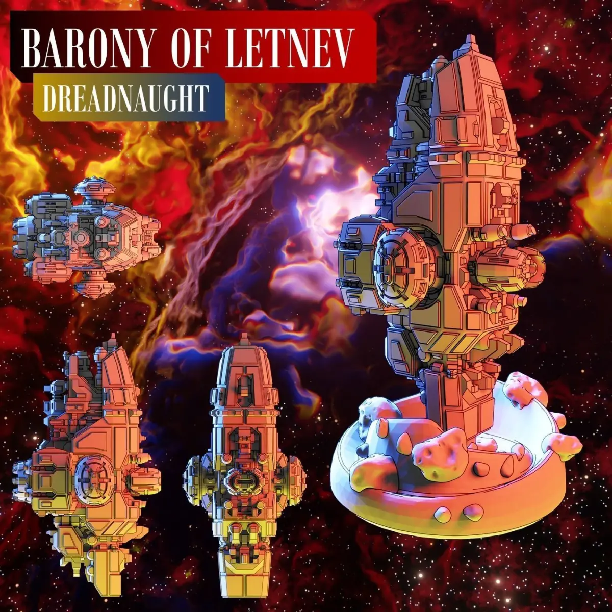 These 3D print-ready files include the following ships customized for the Barony of Letnev: