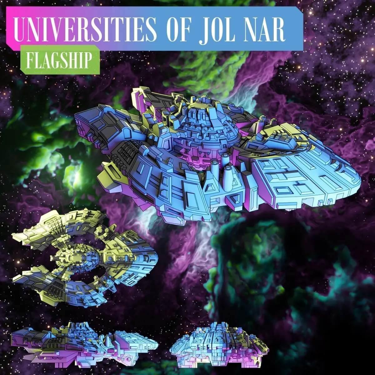 These 3D print-ready files include the following ships customized for the Universties of Jol Nar!