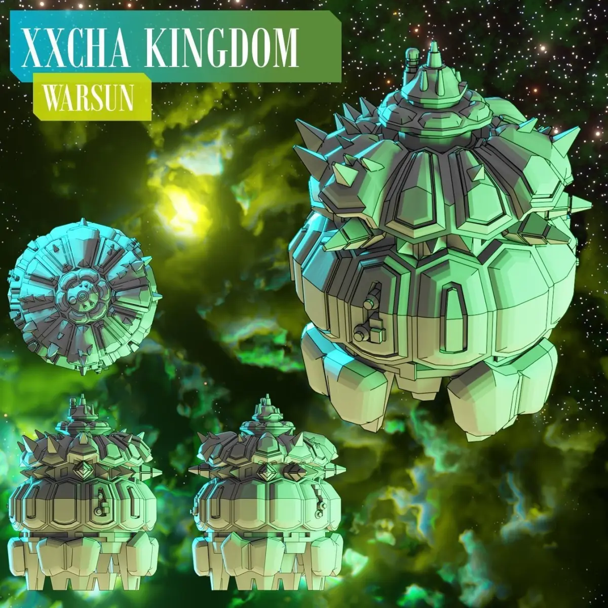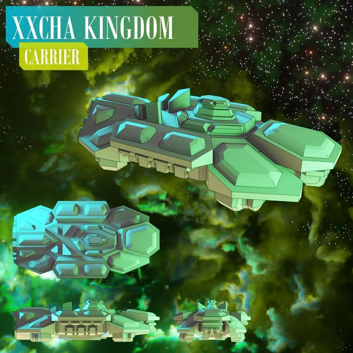 These 3D print-ready files include the following ships customized for the Xxcha Kingdom: