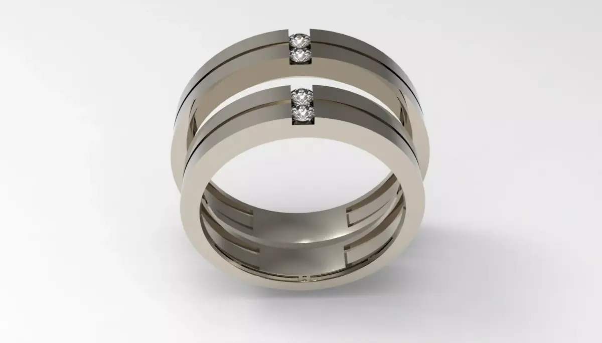 This elegant wedding ring set embodies the essence of unity and modern sophistication.Crafted in sleek white gold, both bands feature a minimalist groove design accented by twin princess-cut diamonds that symbolize balance and eternal connection.The clean geometry reflects a timeless aesthetic, perfect for contemporary couples who value understated luxury.Optimized for realistic rendering, this 3D model offers precision in detail and smooth topology — ideal for jewelry designers, manufacturers, and 3D artists.A refined statement of love and craftsmanship, blending harmony, elegance, and perfect symmetry.Men's Ring Size: 62 EuroWoman's Ring Size: 54 EuroFor any edit or revision: DM +447301387795 / +447350761213 or elpouriapaypal@gmail.com